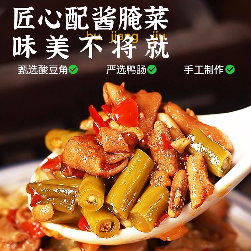 现货酸豆角鸭肠剁椒酱下饭菜即食拌面酱菜酸辣鸡杂拌饭酱瓶装 湖南