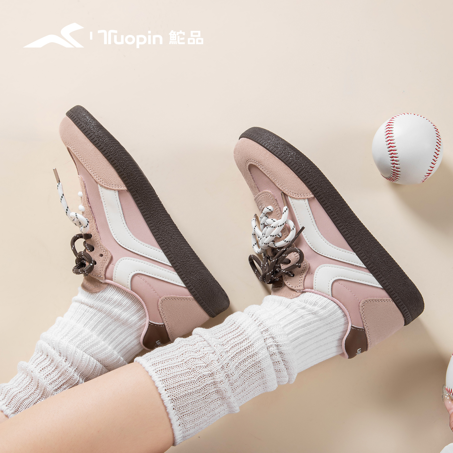 轻便复古真皮鞋 百搭休闲运动板鞋 子 女2025秋冬新款 鮀品粉色德训鞋