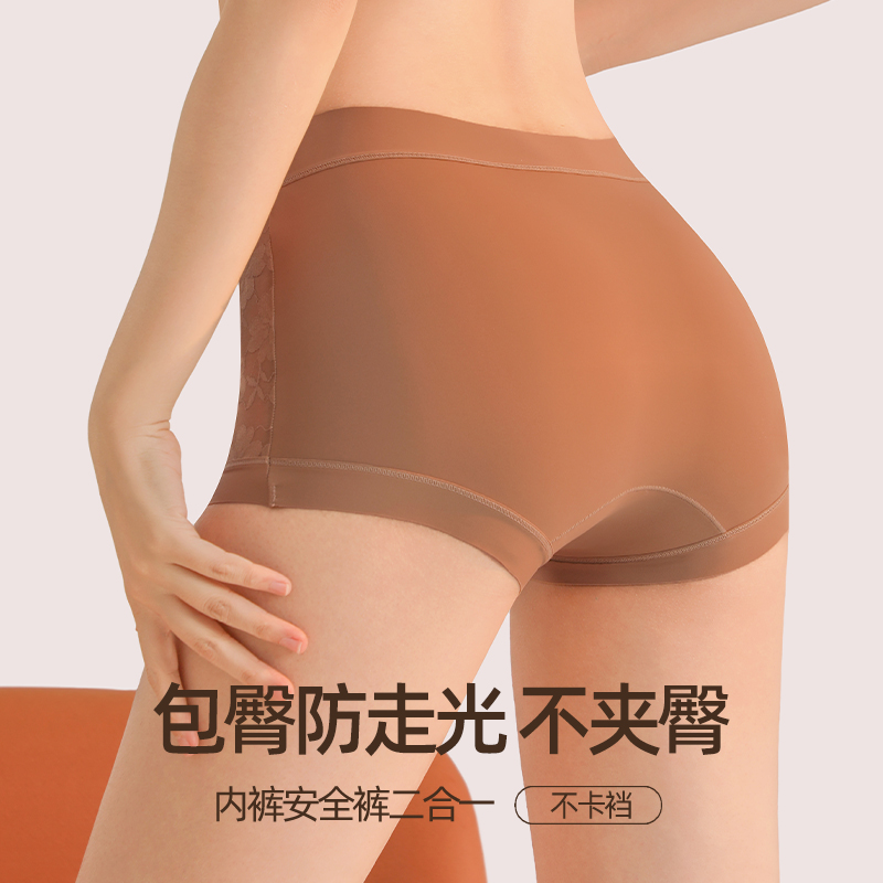 2025夏季 三合一平角裤 女防走光冰丝无痕收腹内裤 猫人粉底液安全裤