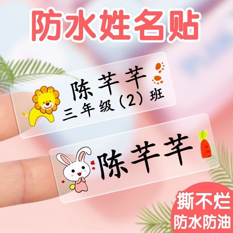 小学生专用姓名贴标签贴纸幼儿园名字贴防水防撕自粘撕膜转印定制