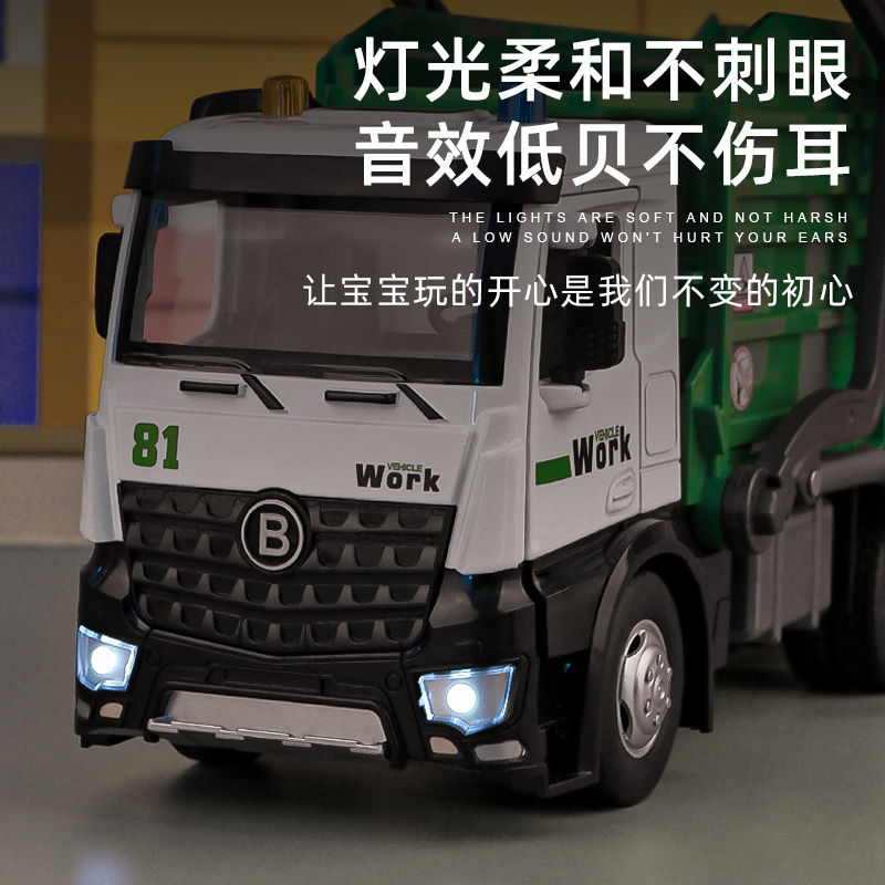 超大号合金垃圾车儿童玩具男孩扫地车工程环卫车清运垃圾分类