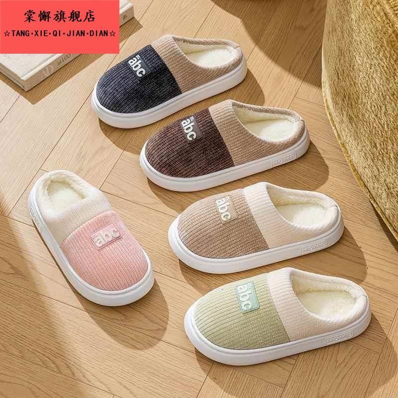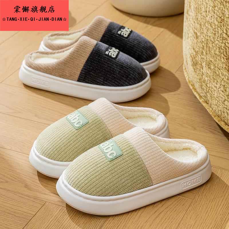 毛拖鞋 保暖厚底棉拖加绒加厚月子鞋 女 家居秋冬情侣防滑棉鞋 棉拖鞋