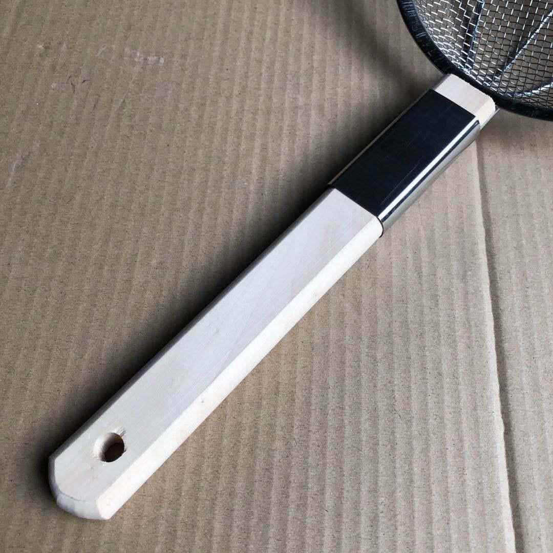 不锈钢大孔漏勺 过滤网勺木柄加长笊篱厨师炸勺商用30粗网4捞勺