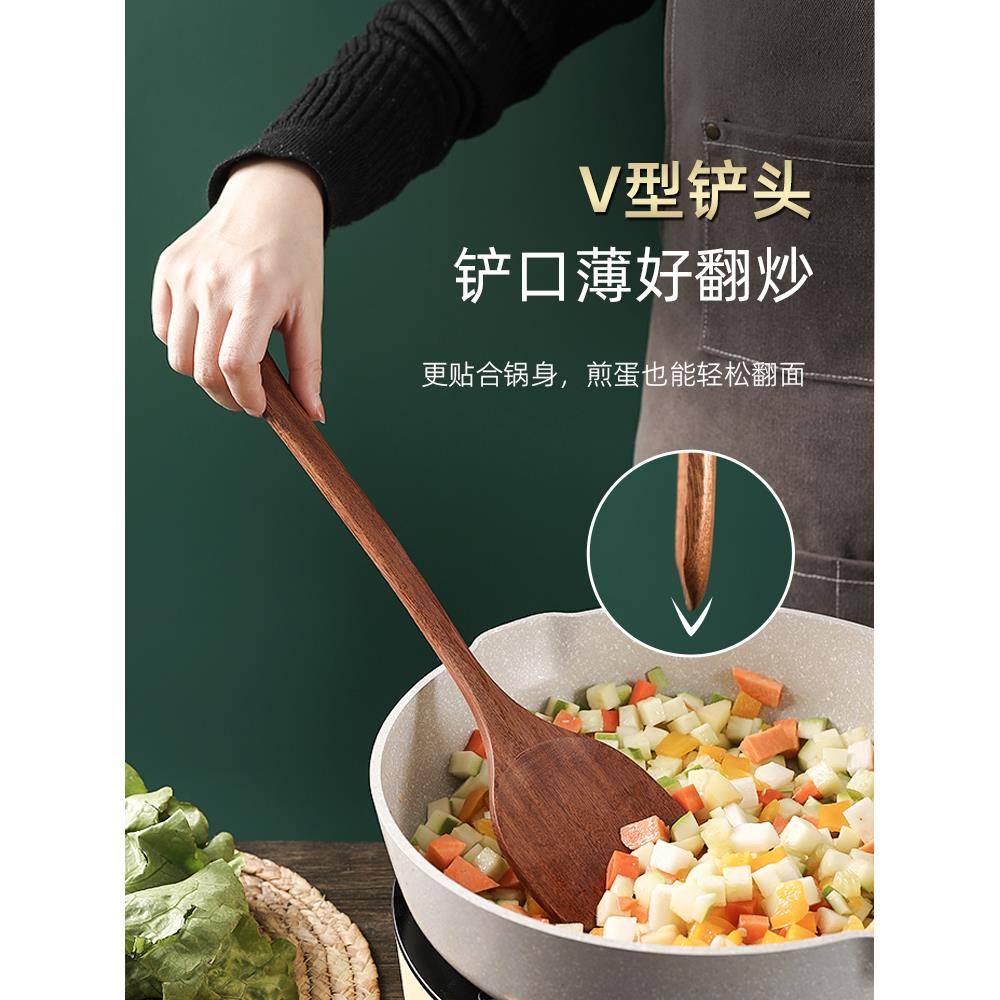 乌檀木锅铲炒菜铲家用耐高温加长不烫手木铲子不粘锅专用铲勺套装