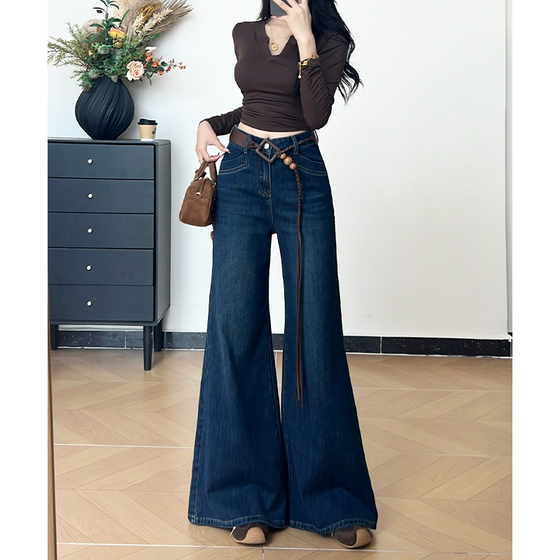 辣妹女长裤 2025新款 中高腰牛仔裤 王家有鱼早秋复古蓝不贴腿微喇裤