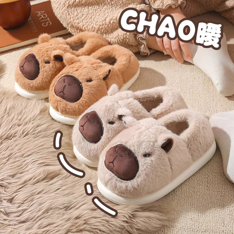 厚底室内家居保暖包头棉拖鞋 卡皮巴拉毛毛拖鞋 女秋冬外穿2025新款