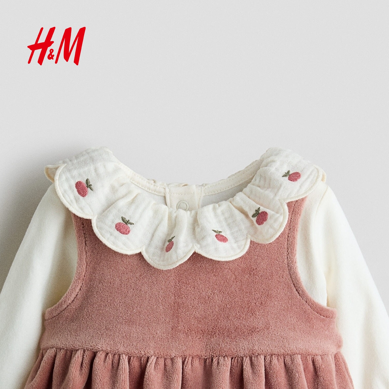 套装 叠穿内搭T恤木耳边牛仔阔腿裤 新款 蓝色镂空针织背心裙女秋季