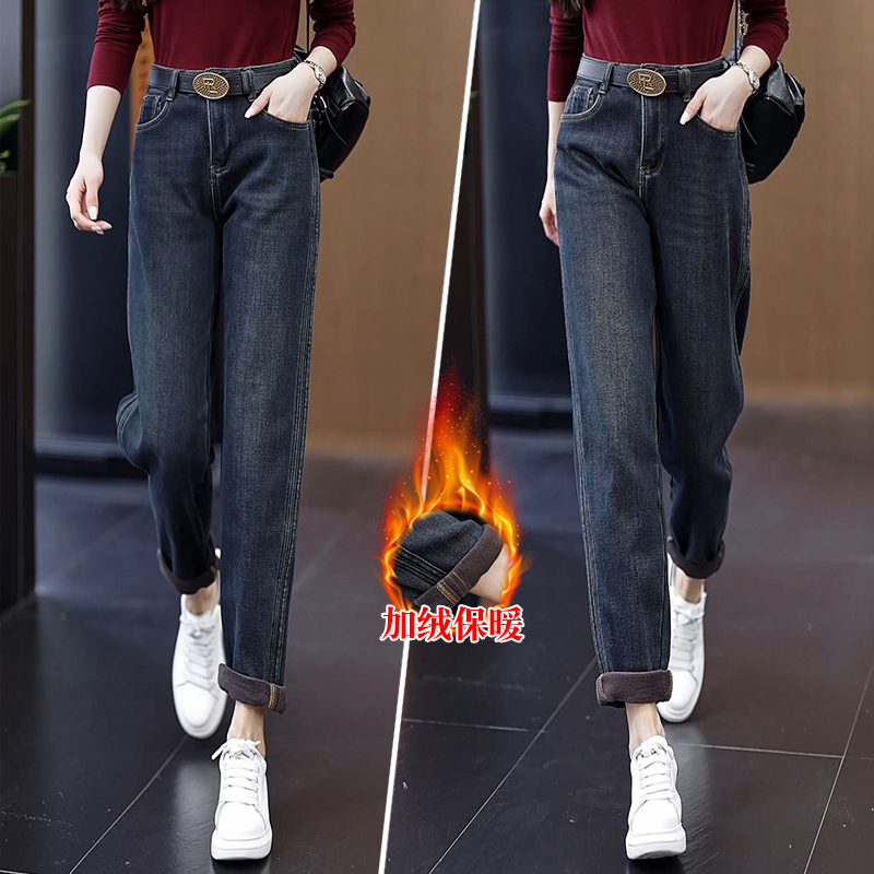 烟管裤 高腰显瘦加绒保暖潮流时尚 女2025秋冬新款 复古蓝牛仔哈伦裤