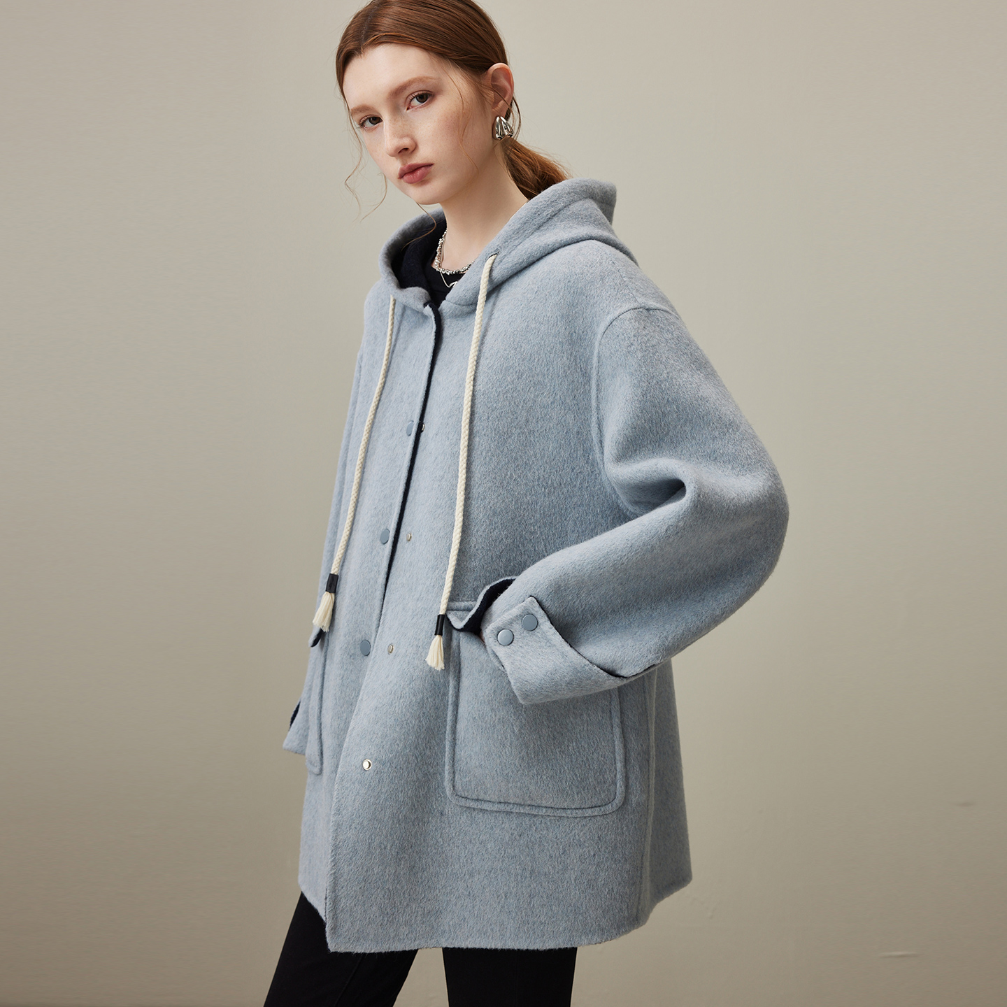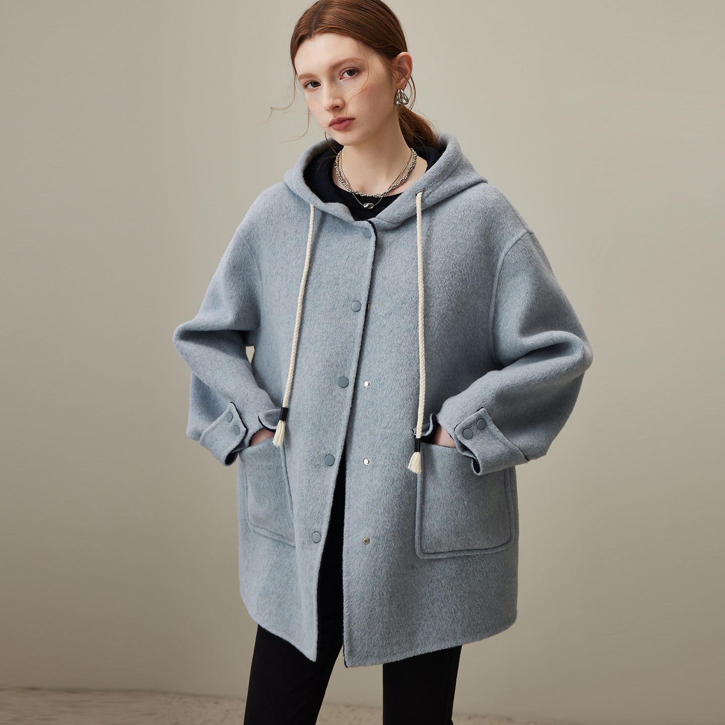 新款 毛呢外套女2025年冬季 连帽双面呢子大衣 绵羊毛中长款 dfvc韩版