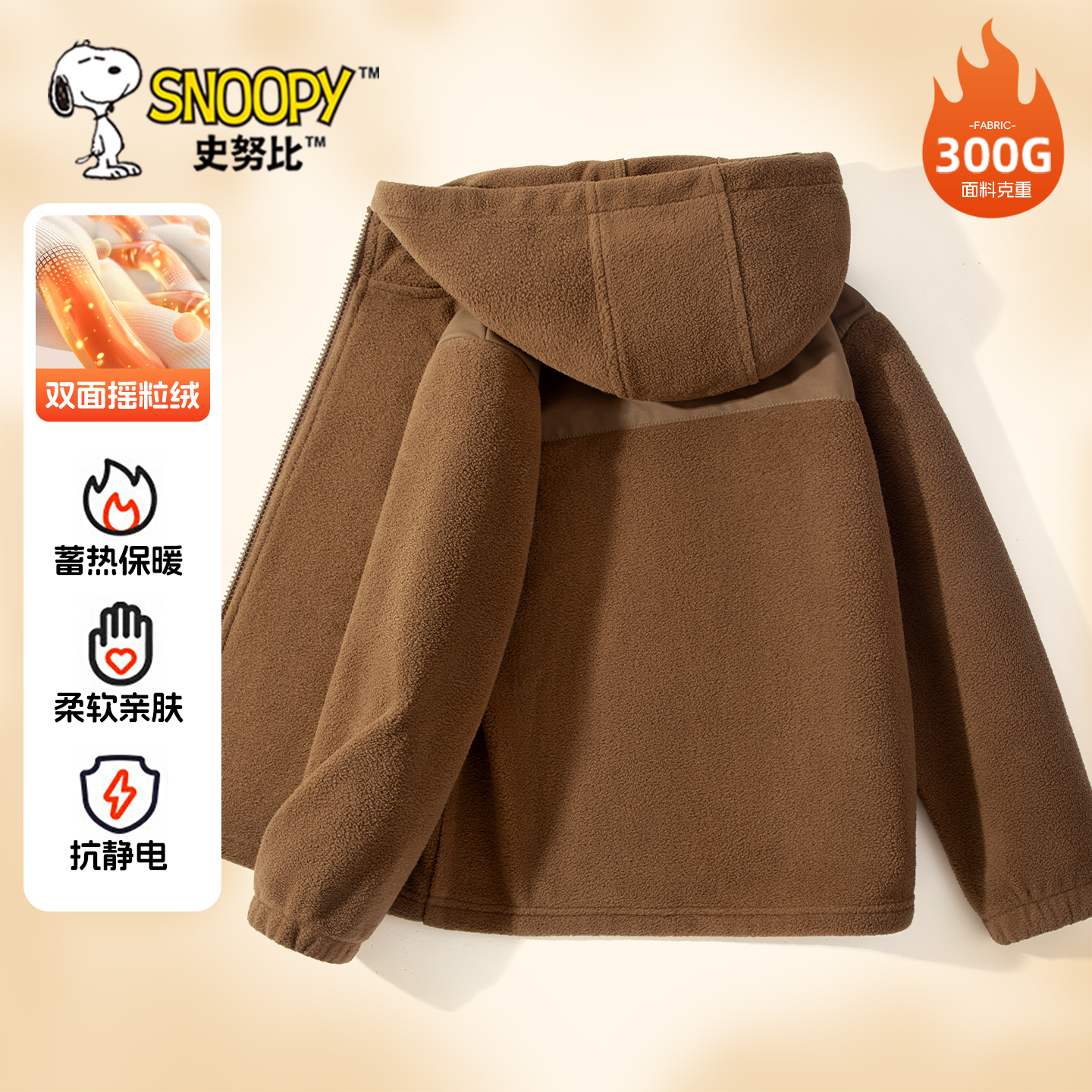 男大童冬装 男孩加厚保暖开衫 2025新款 史努比男童摇粒绒外套秋冬款