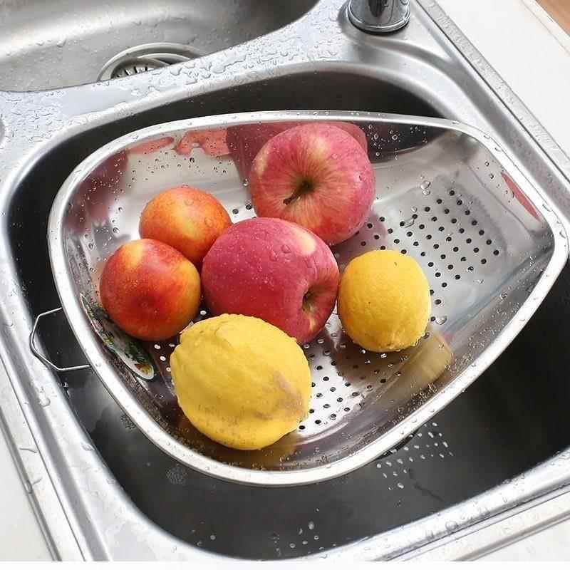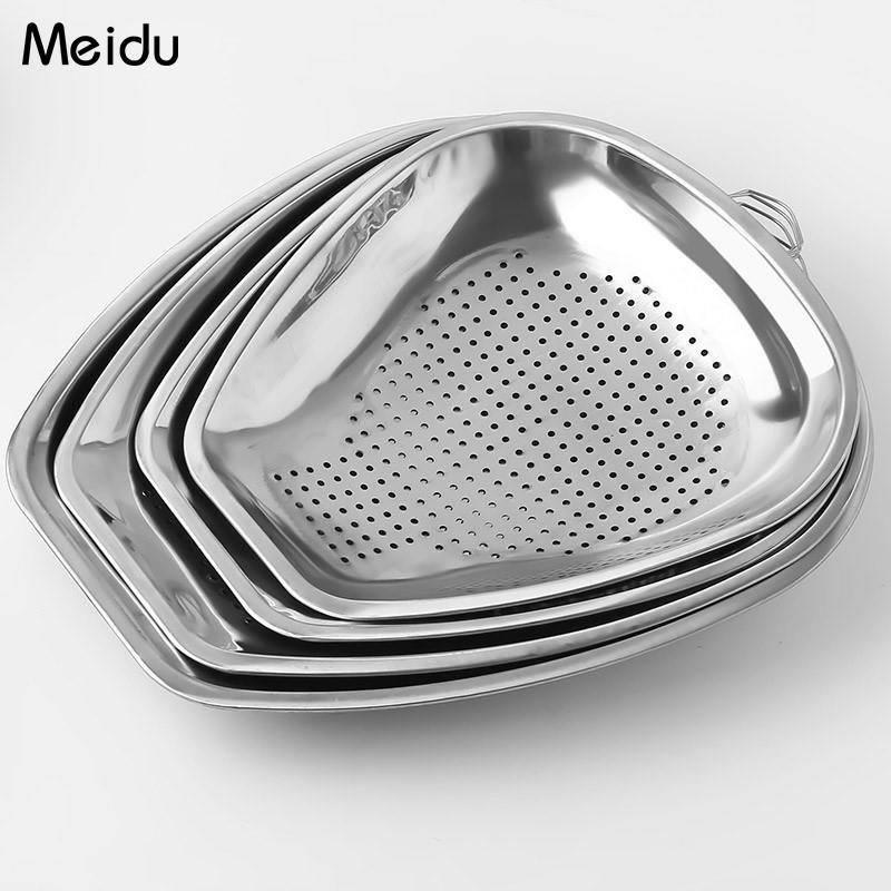 304不锈钢密孔筲箕沥水洗菜簸箕家用晾晒篮沥饭筲箕加大加厚