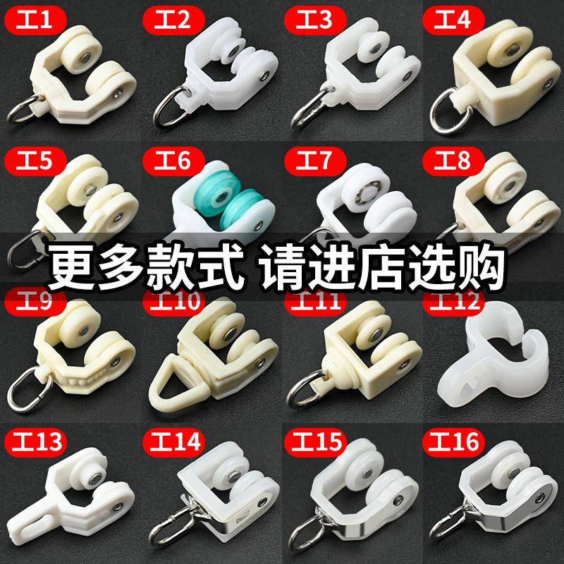 窗帘轨道滑轮挂勾配件老式 滚轮弯轨导轨滑道挂钩扣环静音滚珠轮子