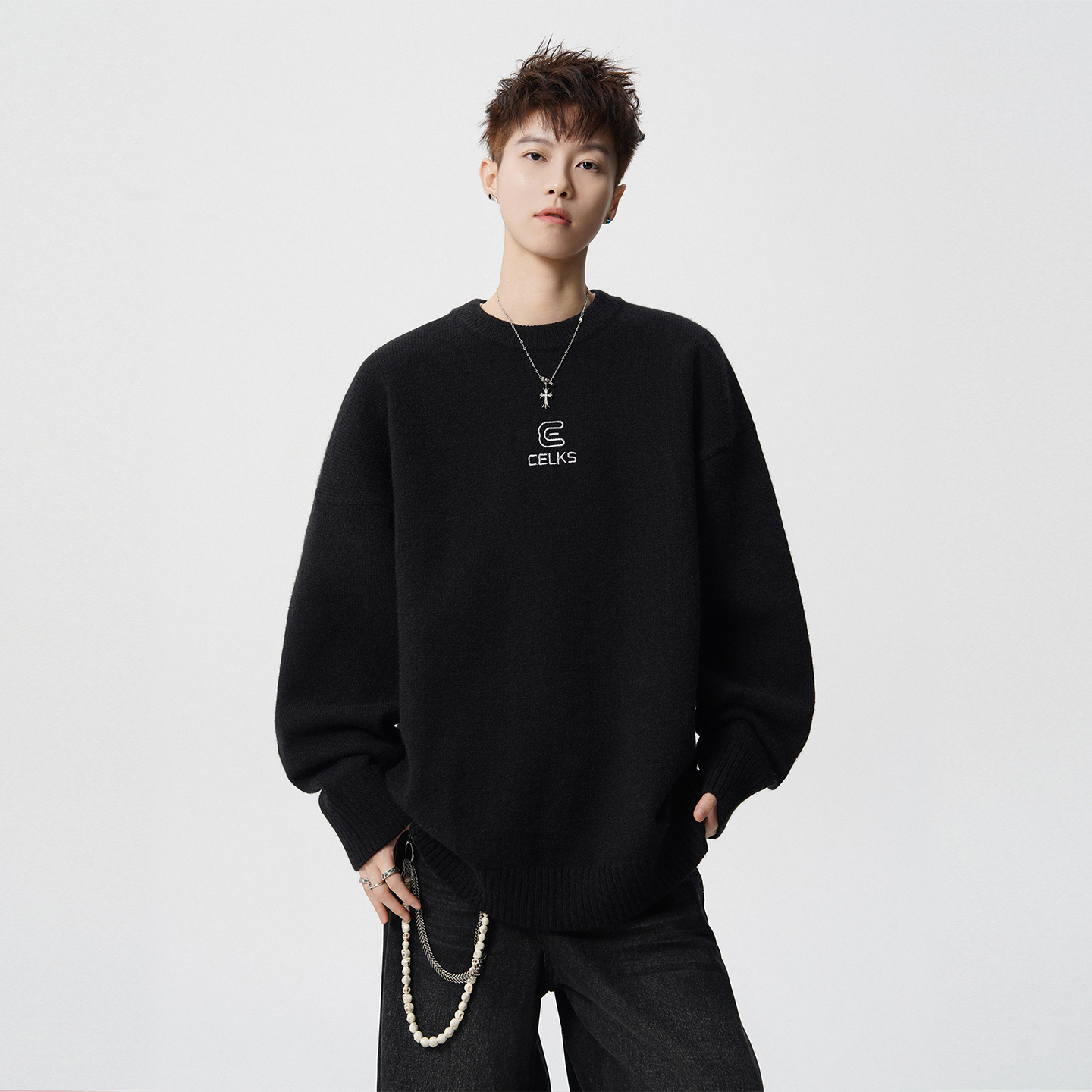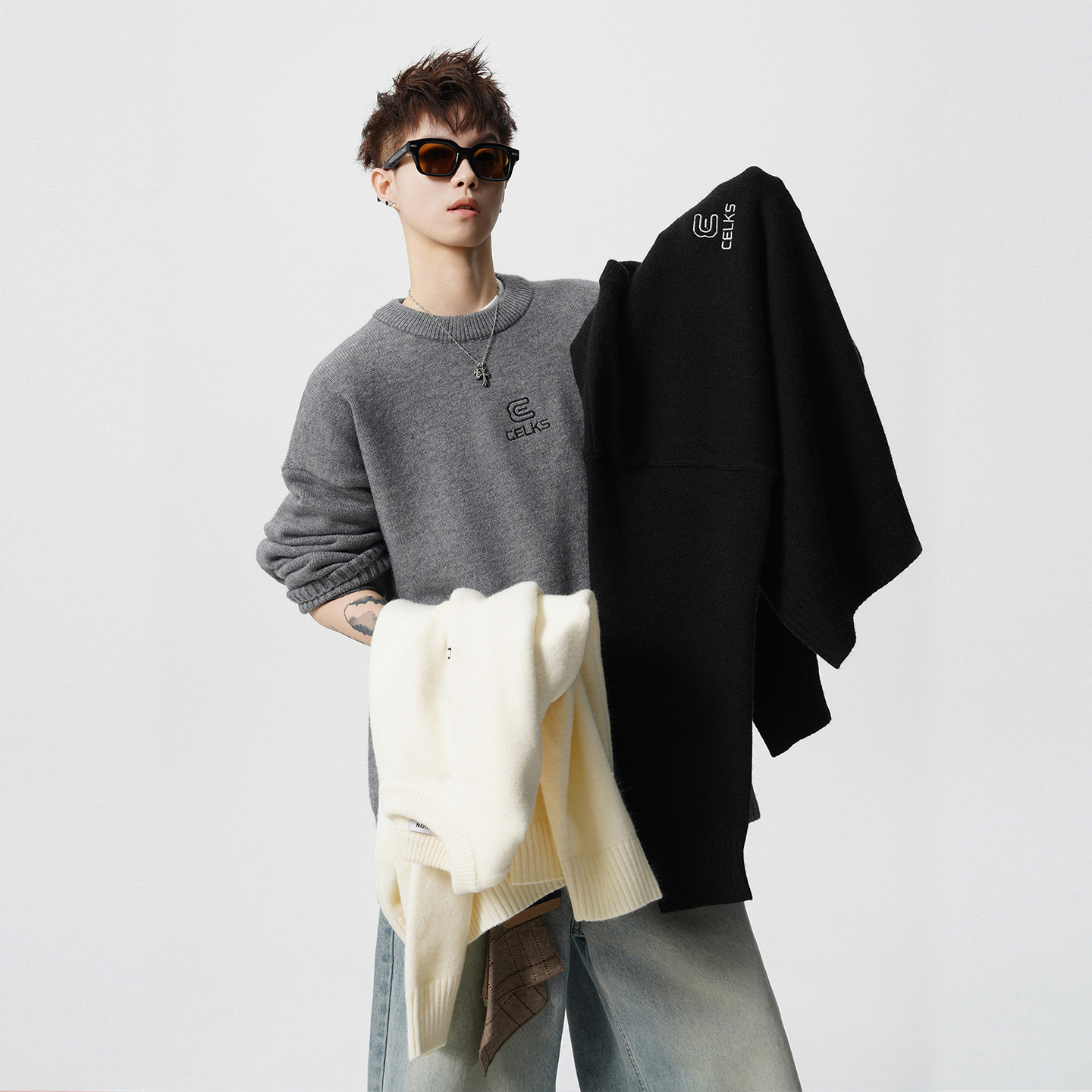V37重磅立领双开拉链纯色毛衣男秋潮牌cleanfit高级感针织衫 外套
