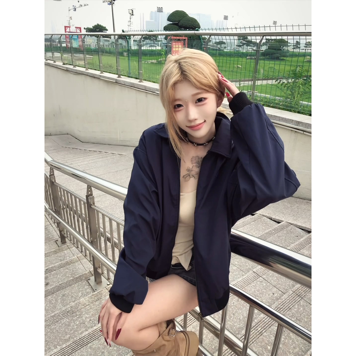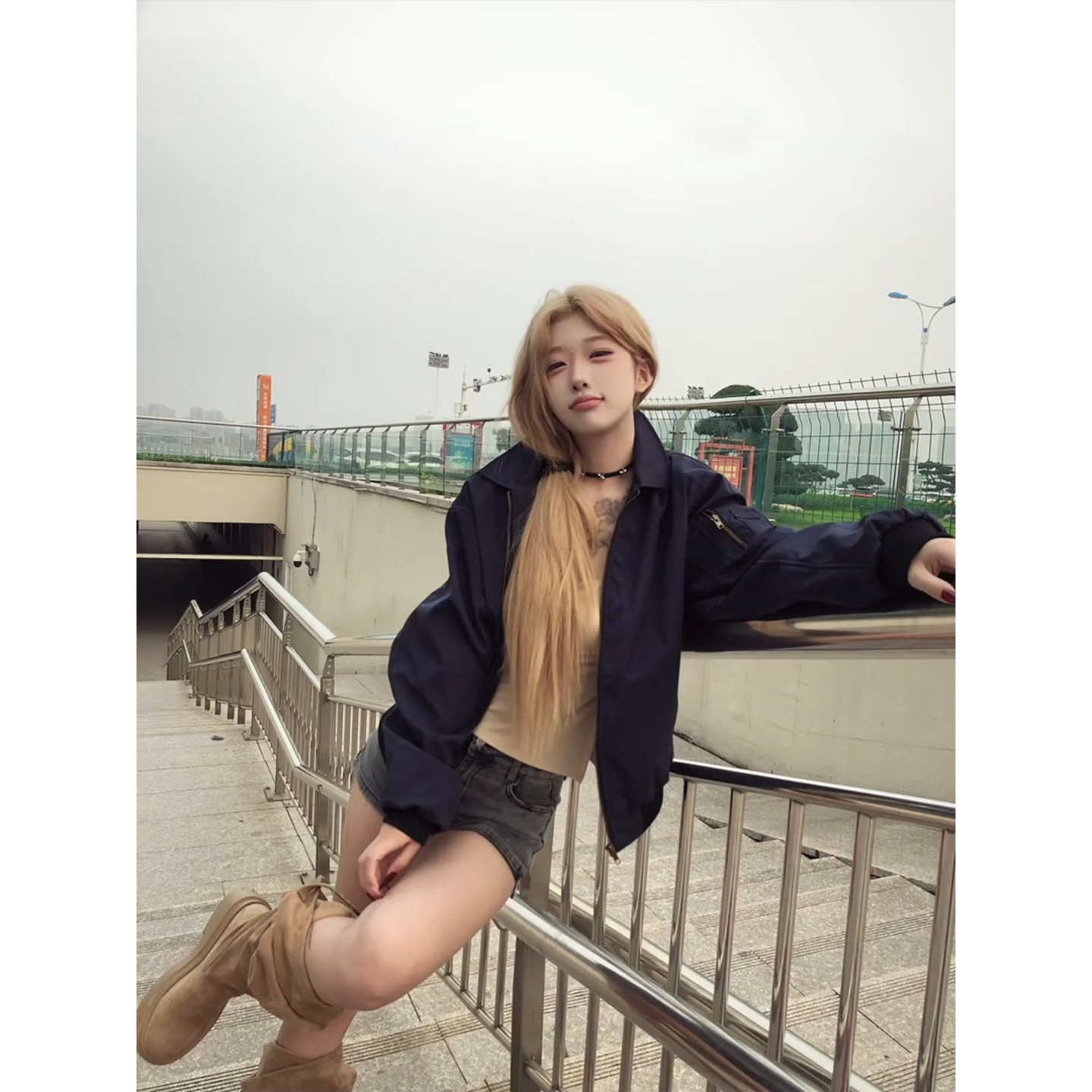 高级感情侣外套飞行员翻领棒球服 秋季 cleanfit藏青色美式 夹克男款