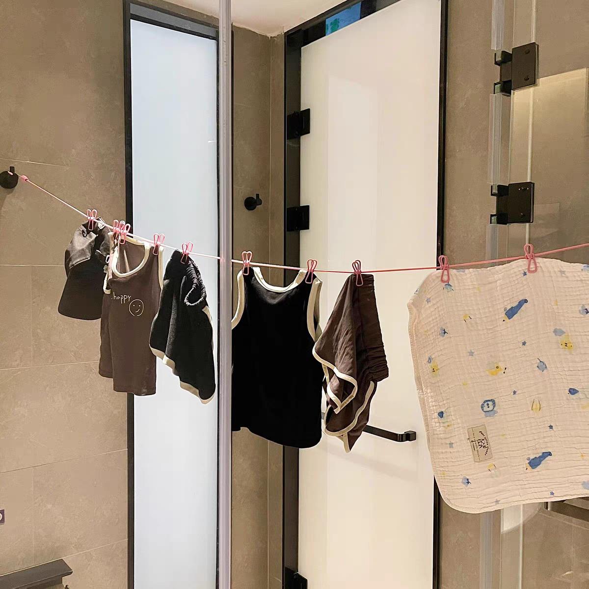 博仕奥吸盘折叠晾衣架阳台家用室内宿舍卫生间隐形杆可伸缩免打孔