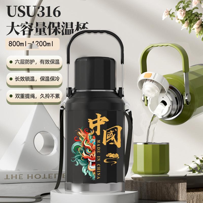 双层316不锈钢保温杯运动保温壶大容量户外便携提手杯轻巧便携式