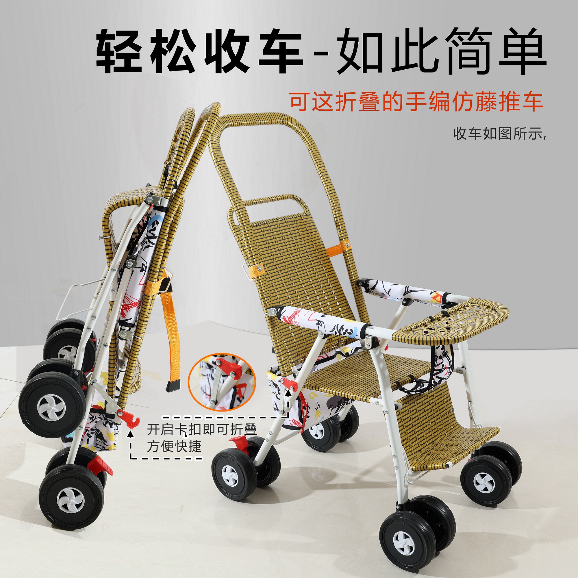 婴儿推车宝宝仿藤编轻便藤椅折叠可坐可躺夏季 竹藤编小儿手推藤车
