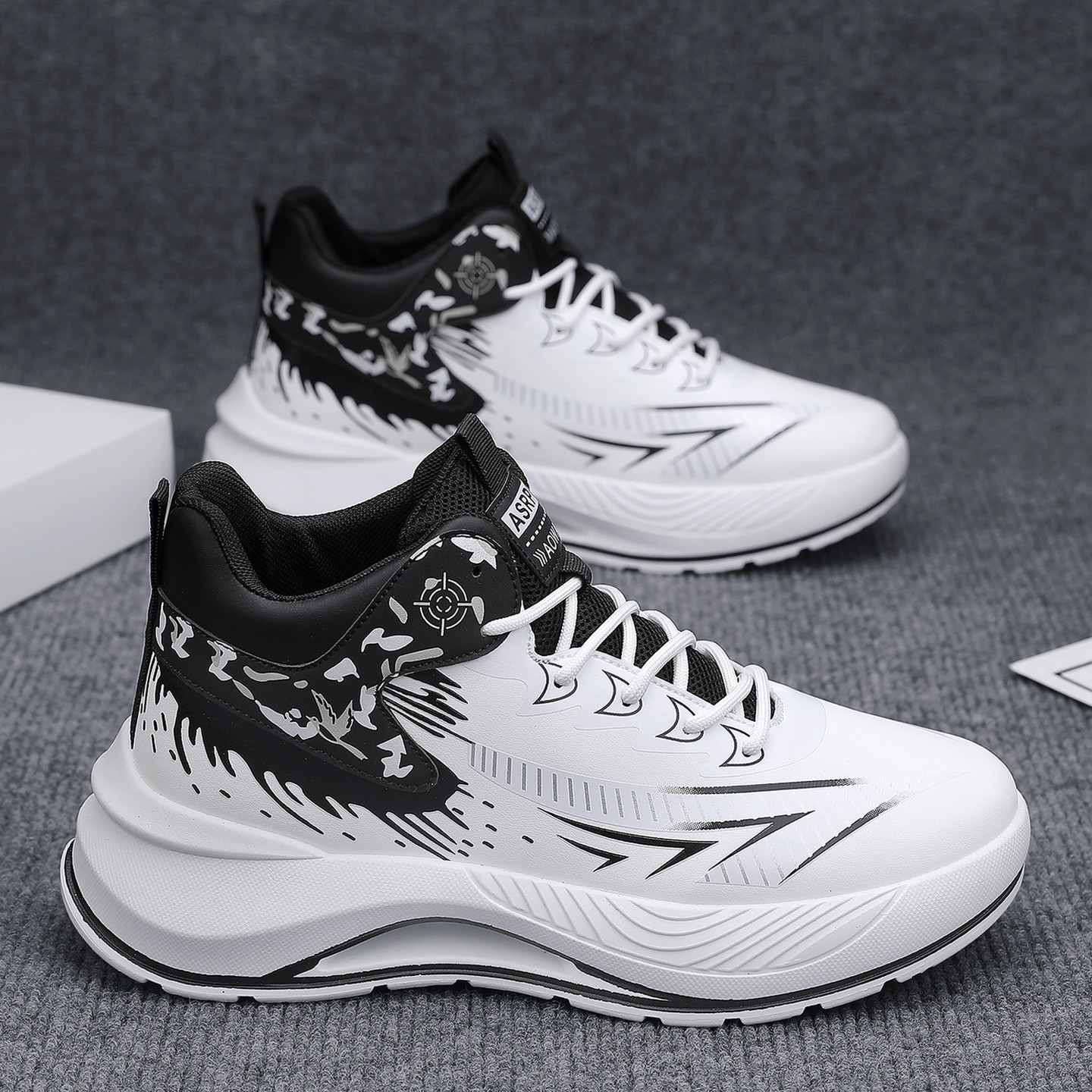 男鞋 子学生运动鞋 新款 皮面鞋 秋冬高帮休闲鞋 电池熊猫鸿星尔克板鞋