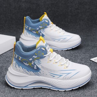 运动鞋 高帮休闲鞋 秋冬新款 子学生厚底男鞋 皮面鞋 征服鸿星尔克板鞋