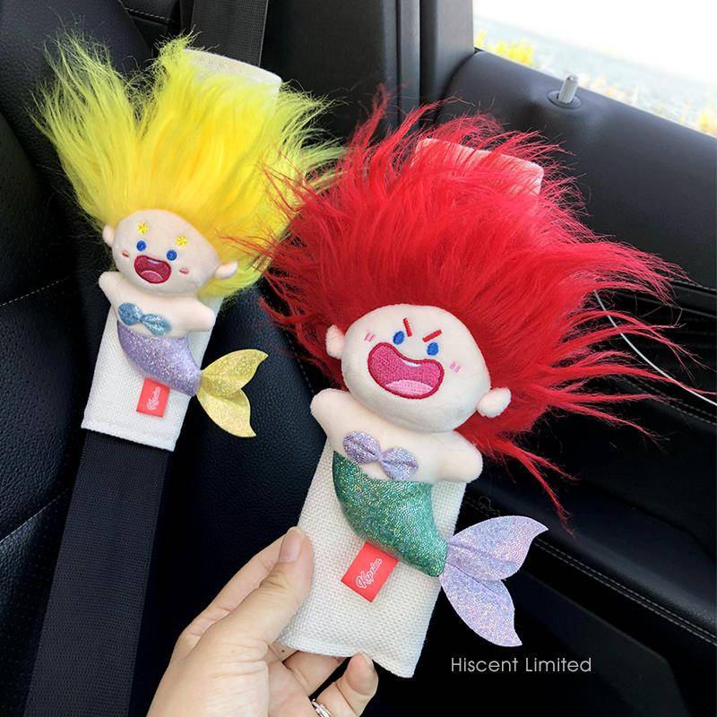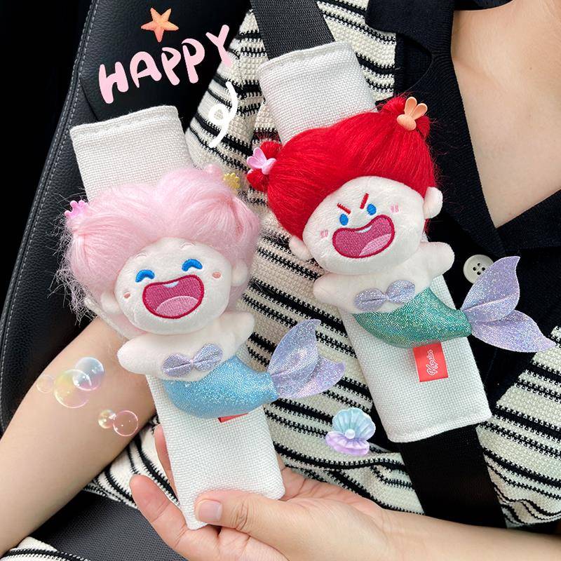 正版 饰 美炸了人鱼汽车安全带护肩套可爱公仔车载玩偶保护套车内装