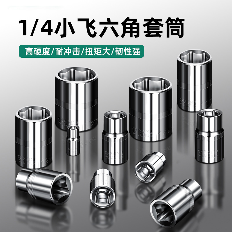 希孟1 6.3mm外六角套筒头快速棘轮扳手维修工具 4小飞6角加长套筒