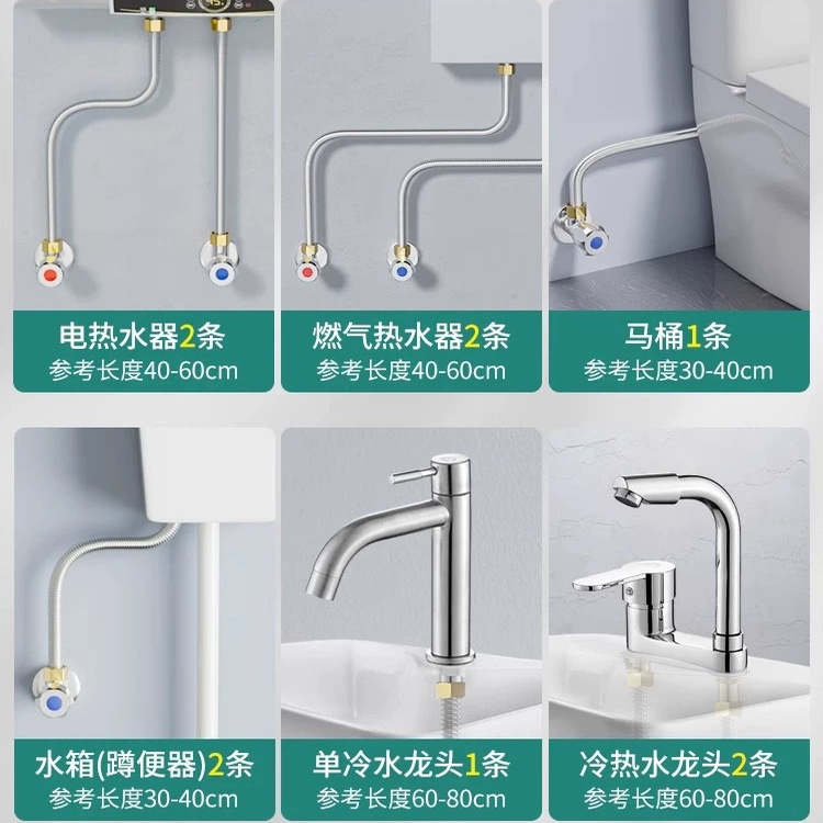 4分304不锈钢波纹管连接热水器马桶高压防爆冷热进出水管软管家用