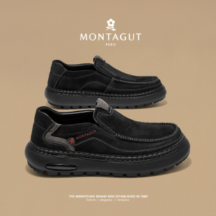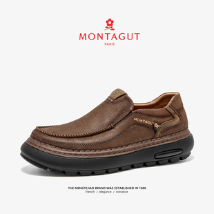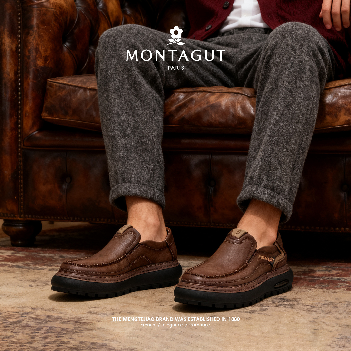 头层牛皮一脚蹬厚底商务休闲中老年爸爸男鞋 老人头皮鞋 男真皮秋季