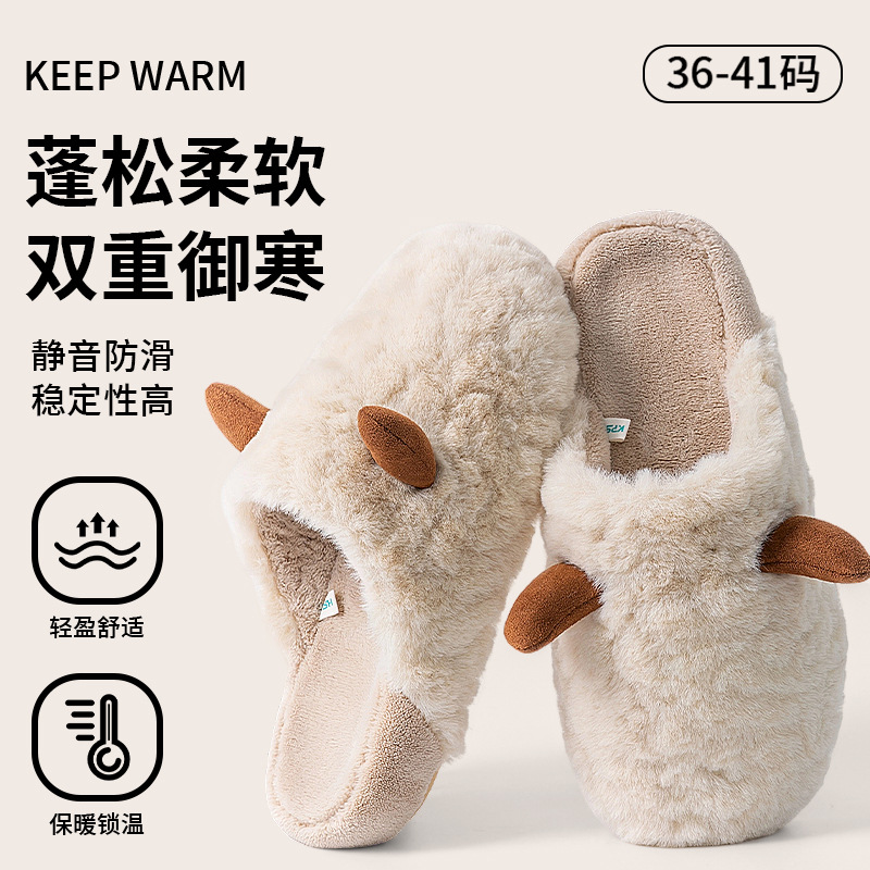 情侣毛绒冬天棉拖 室内家居家用保暖牛角棉拖鞋 女士秋冬季 2025新款