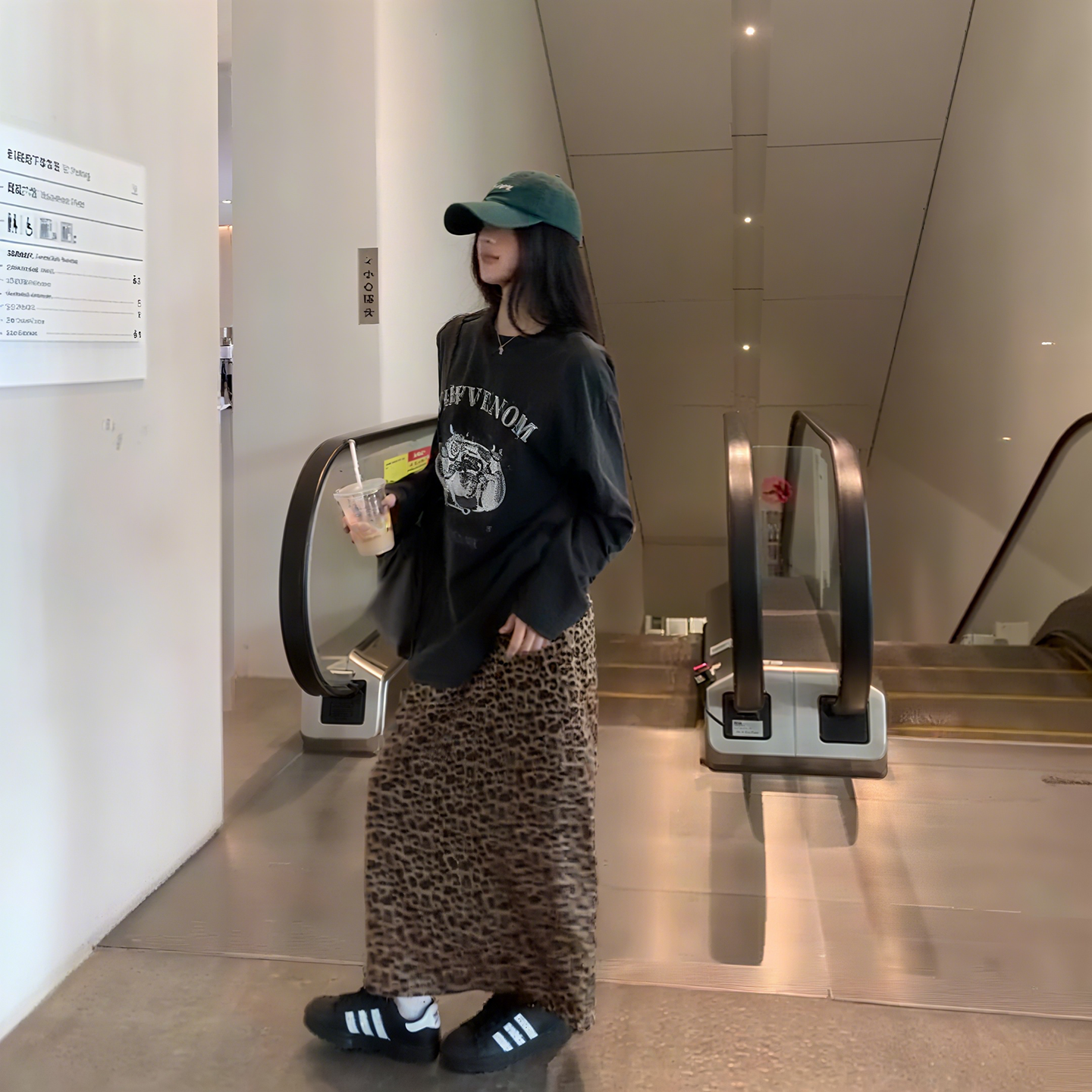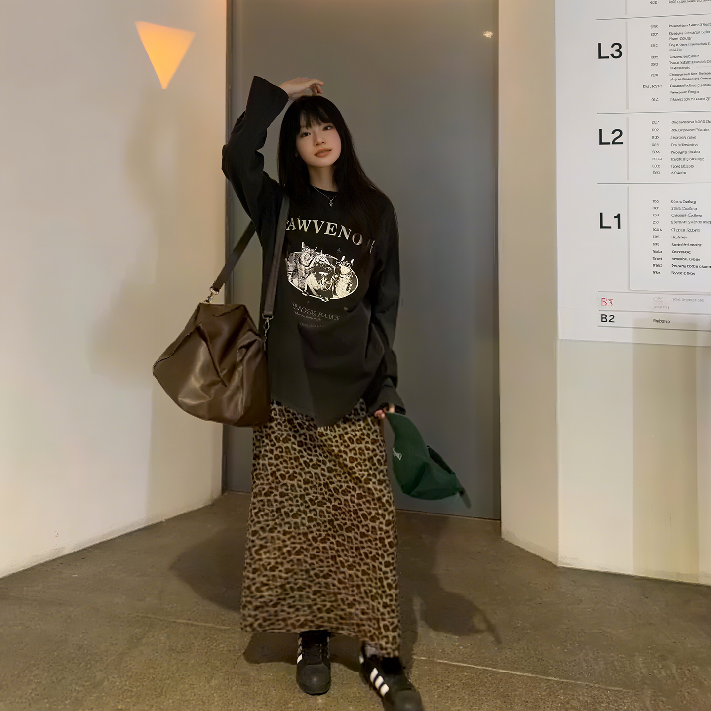 复古ins风圆领长袖 时尚 卫衣女2025新款 黑色个性 印花上衣 秋季 美式