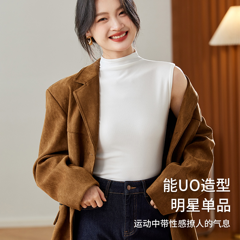 时尚 半高领无袖 显瘦女士秋冬新款 加绒保暖内搭修身 T恤上衣 打底衫