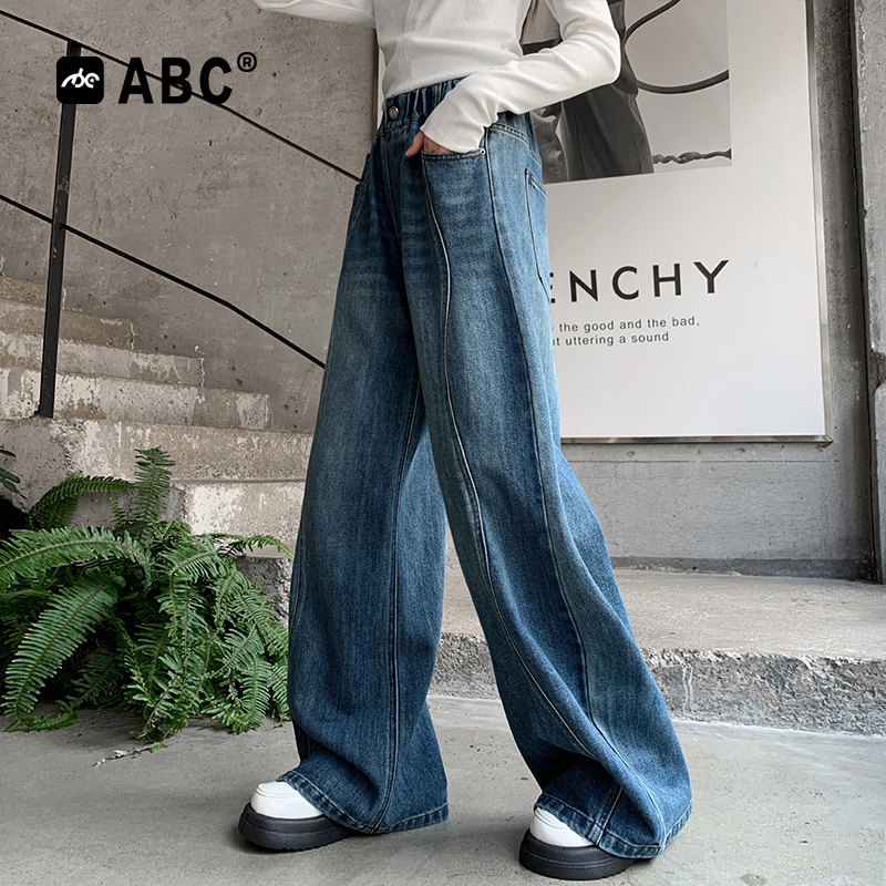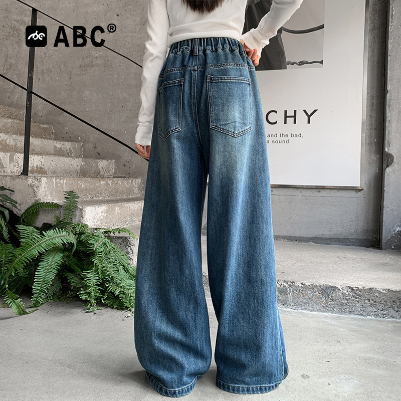 女孩宽松裤 ABC女童韩版 中大童春秋时髦直筒裤 新款 子潮 阔腿牛仔裤