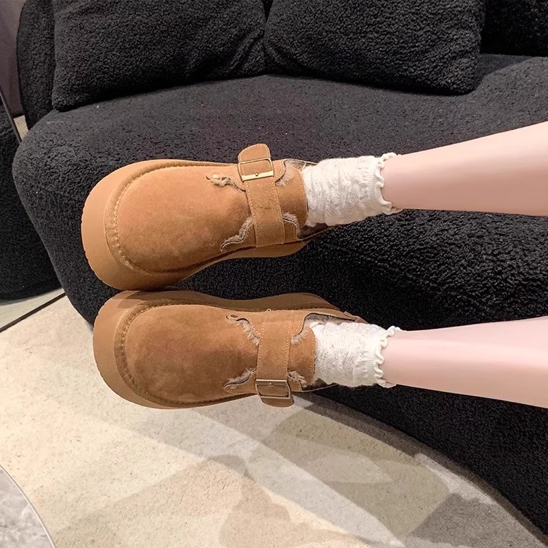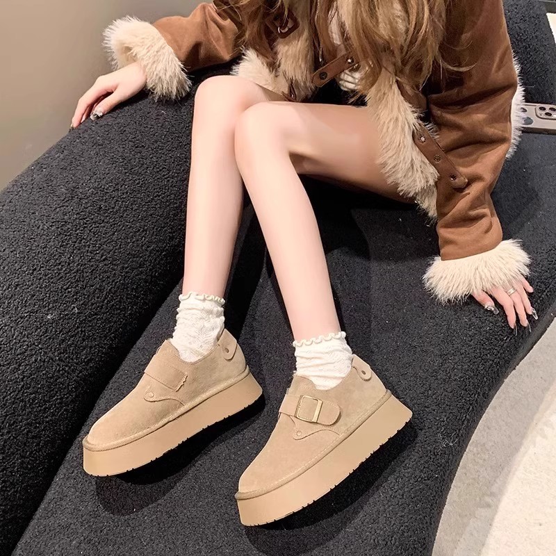 豆豆鞋 温柔风勃肯鞋 子 女2024秋冬新款 星期六真皮平底加绒浅口单鞋