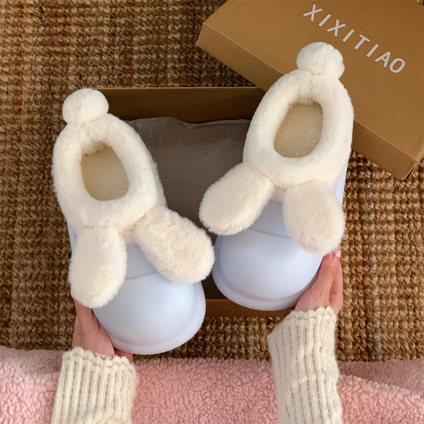 防水包跟可拆卸女童男童毛毛棉鞋 宝宝棉拖鞋 冬季 卡通兔子儿童拖鞋
