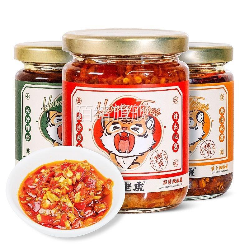 甜老虎辣椒酱湖南特产蒜蓉辣酱拌饭拌面调味酱贡菜萝卜下饭菜瓶装