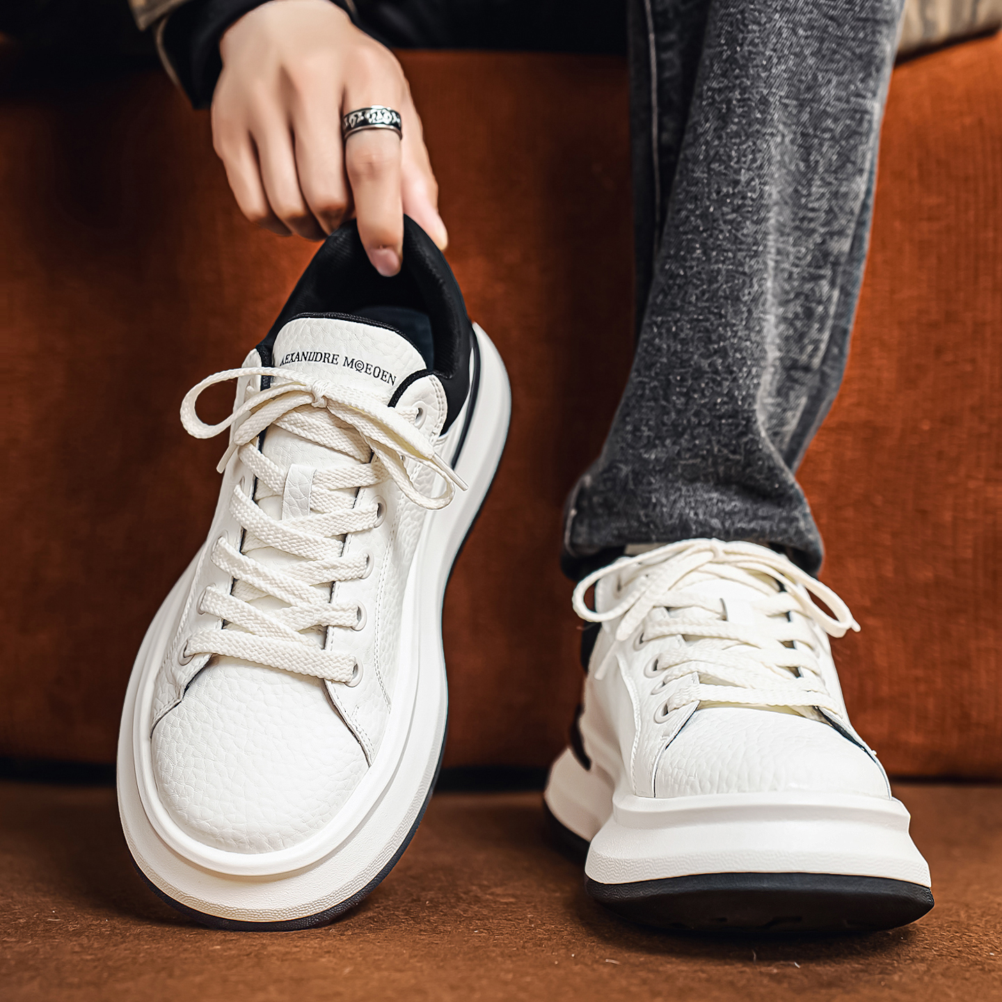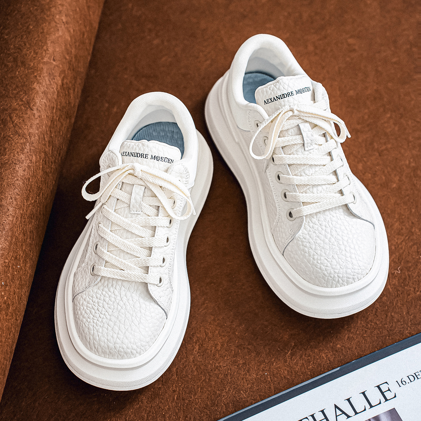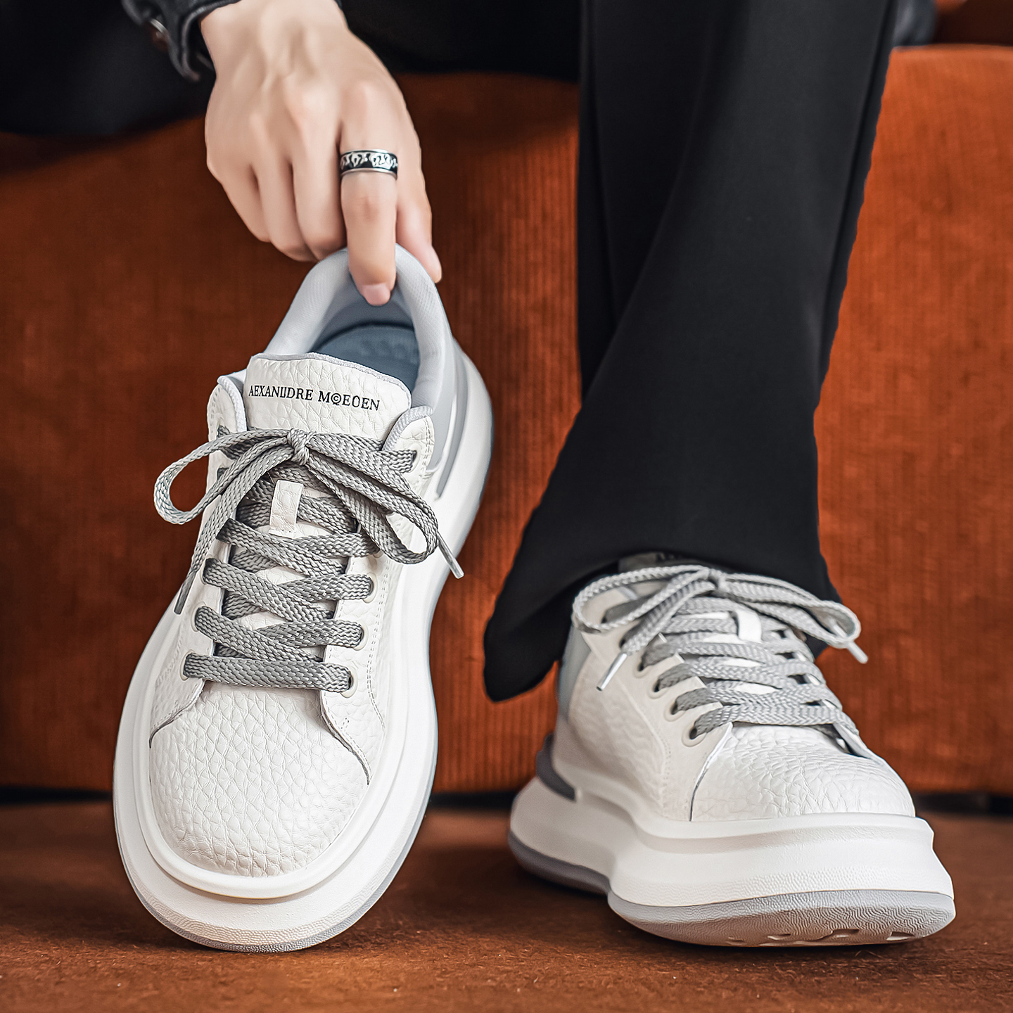 休闲学生大头宽楦高级感潮鞋 青少年运动增高小白板鞋 秋季 真皮男鞋
