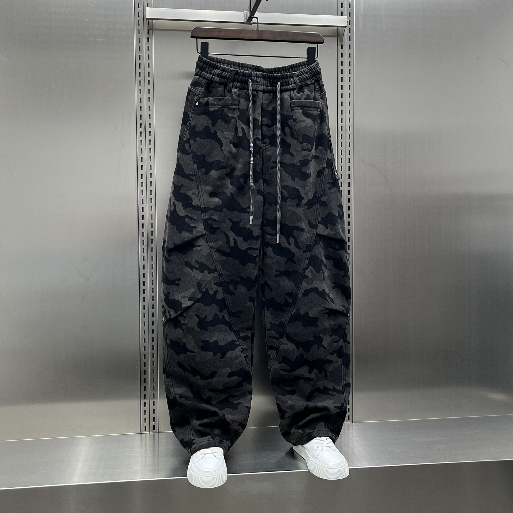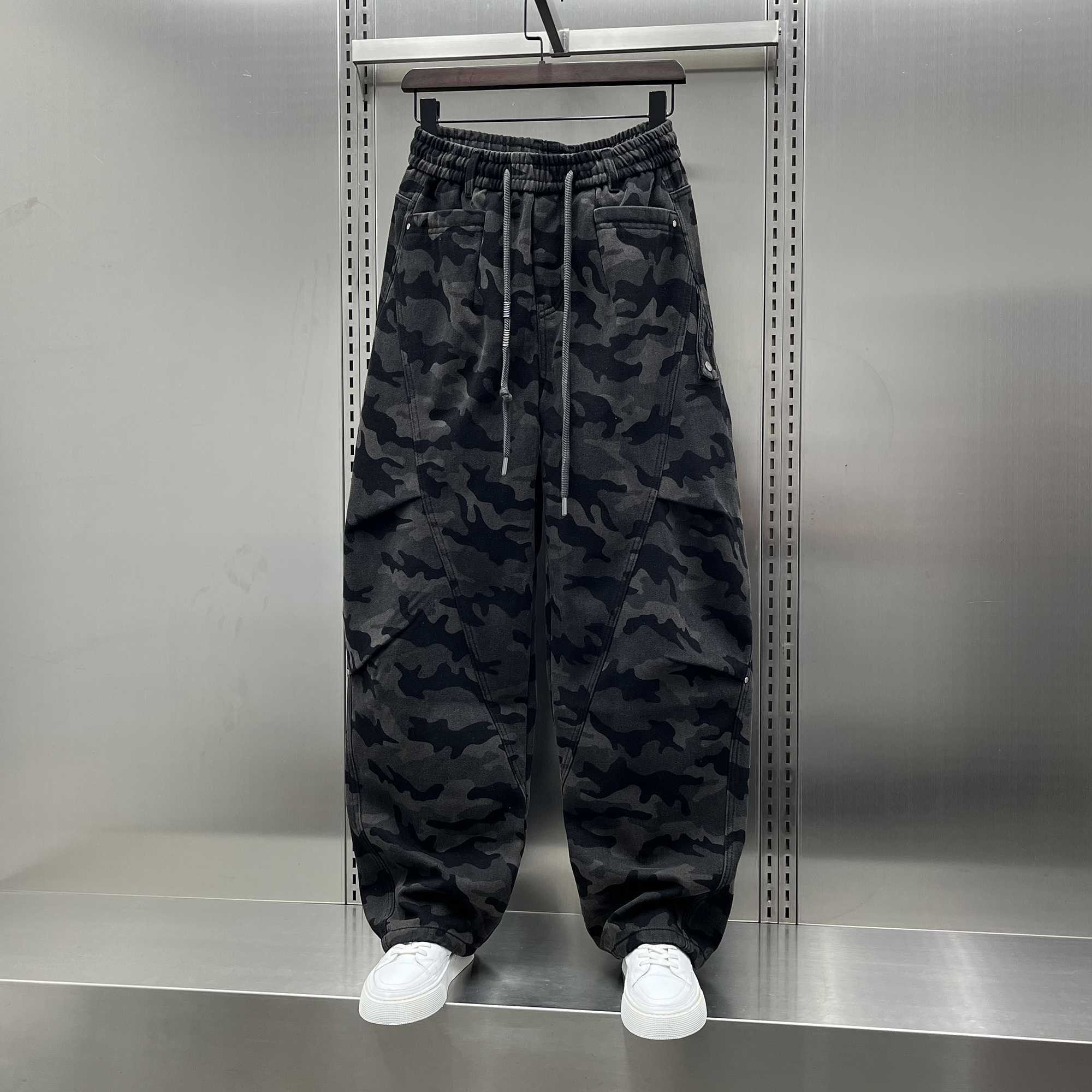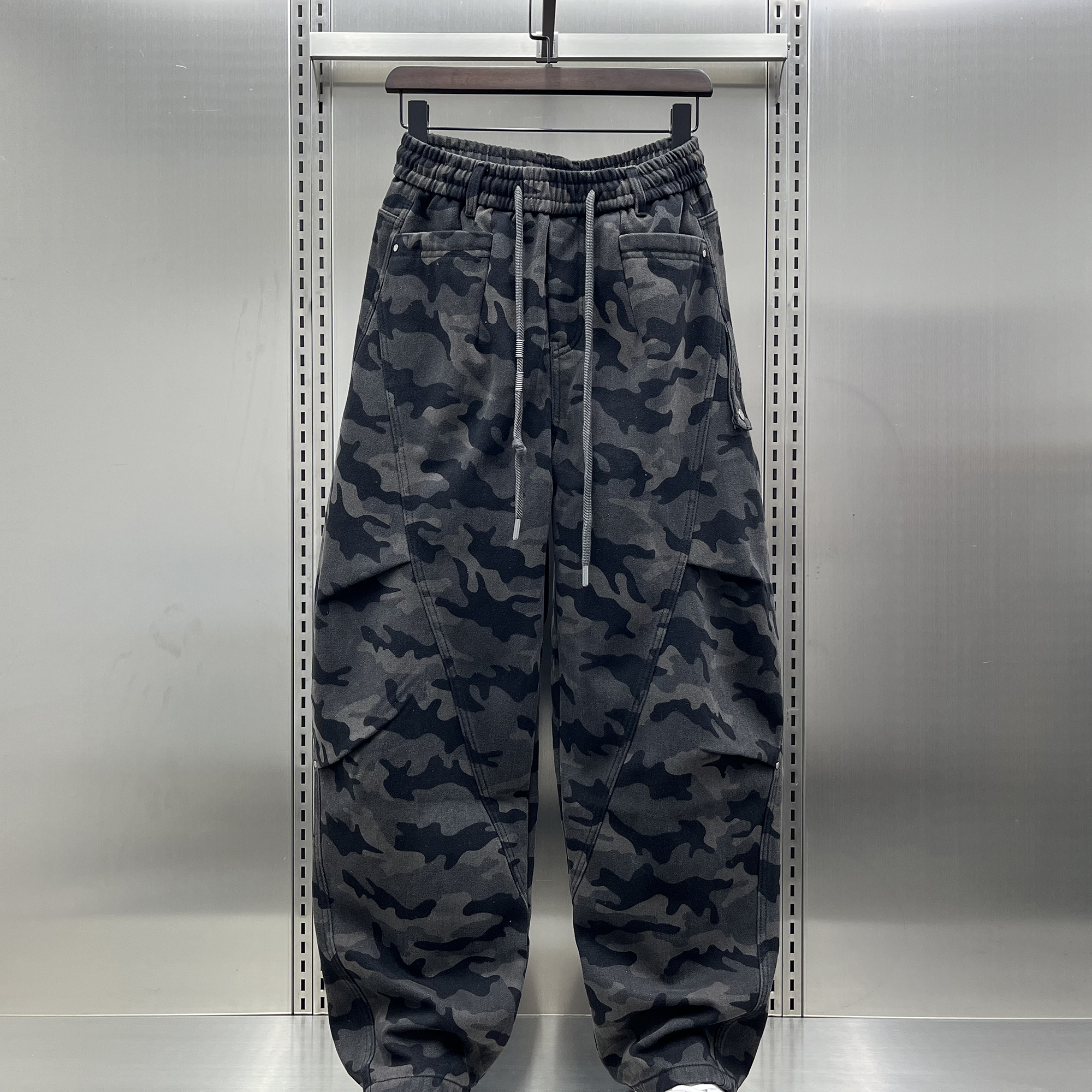裤 加厚阔腿裤 男2025秋季 潮牌大码 新款 日系户外机能风加绒迷彩工装
