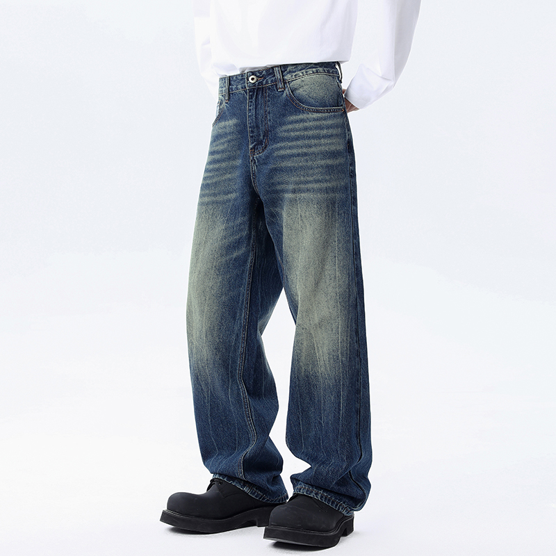 男 秋冬微锥直筒休闲裤 雪花肌石磨洗牛仔裤 男春秋复古宽松小脚男裤