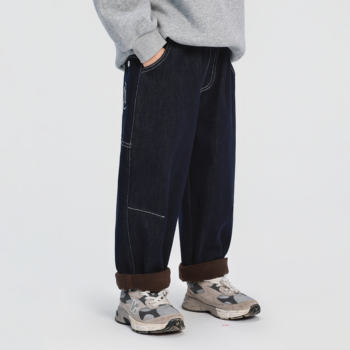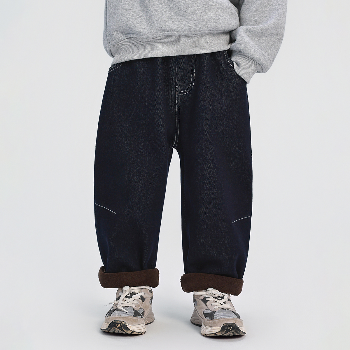 儿童加厚保暖一体绒男孩舒适长裤 男童加绒牛仔裤 冬款 2025新款 冬装