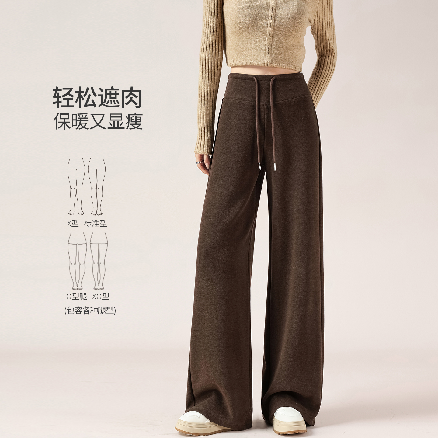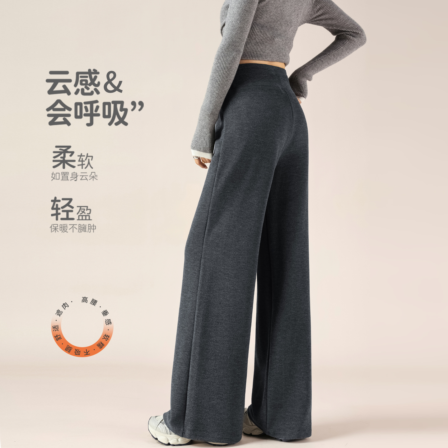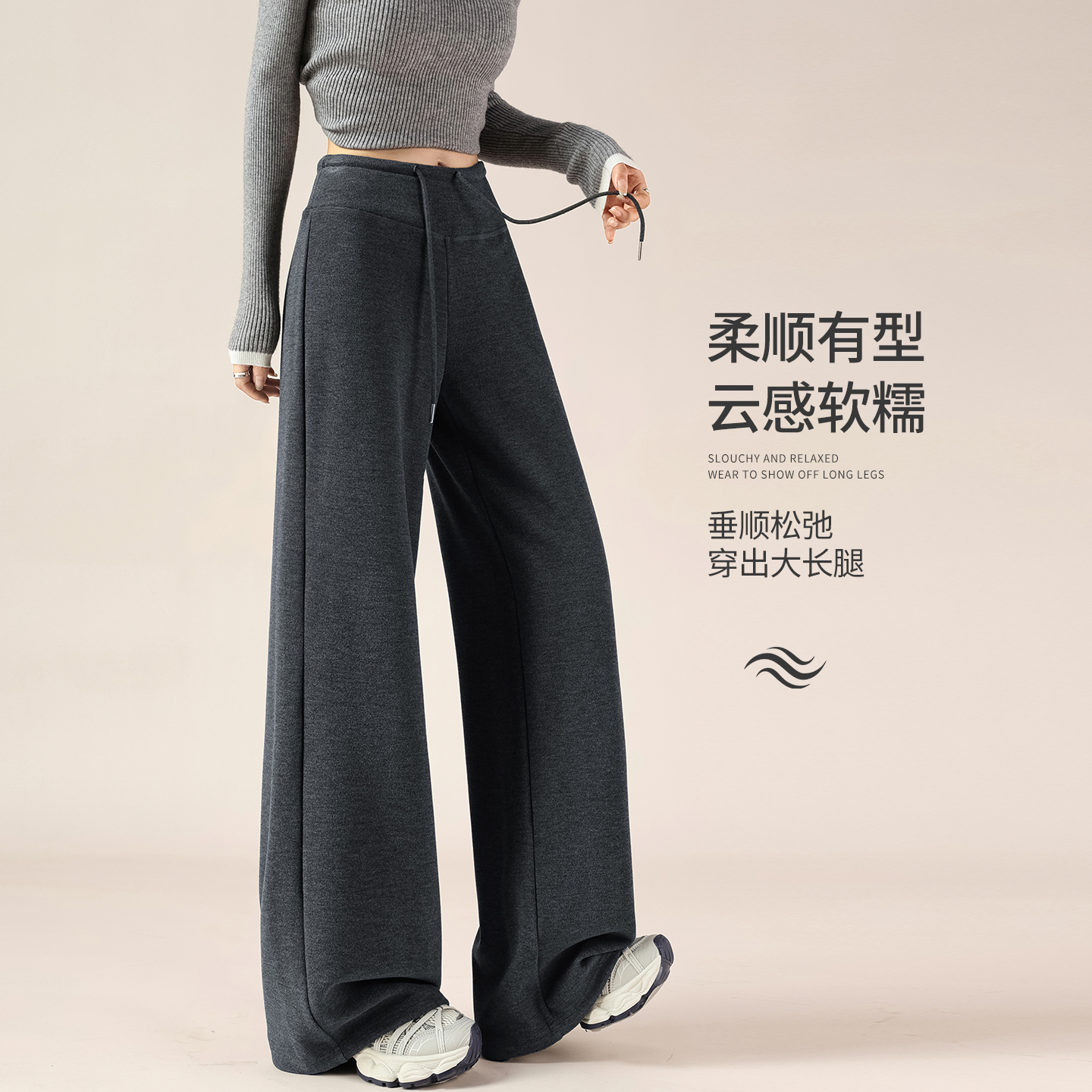 女秋冬季 高腰防风休闲裤 2025新款 加绒运动裤 子 窄版 灰色糯米阔腿裤