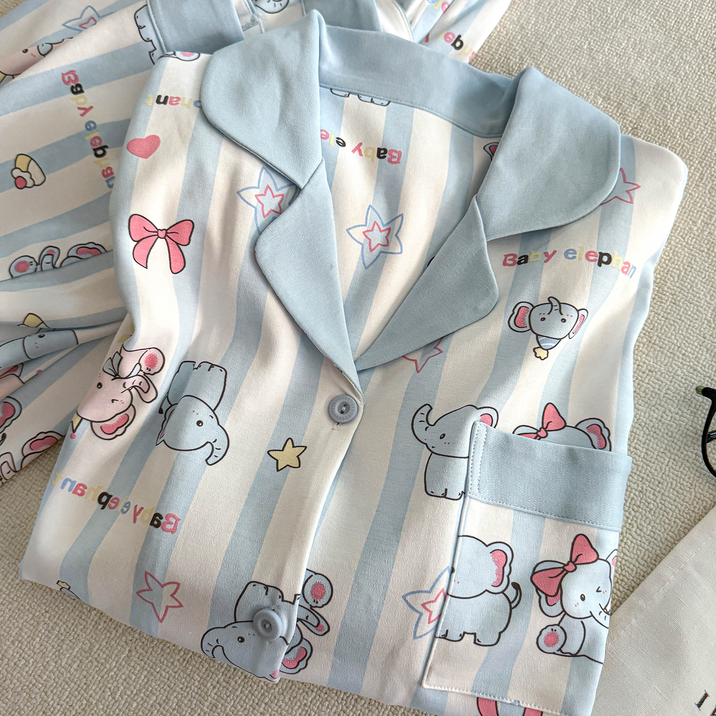 冬天超火全棉可爱家居服 2025新款 俞兆林小象睡衣女春秋季 纯棉长袖