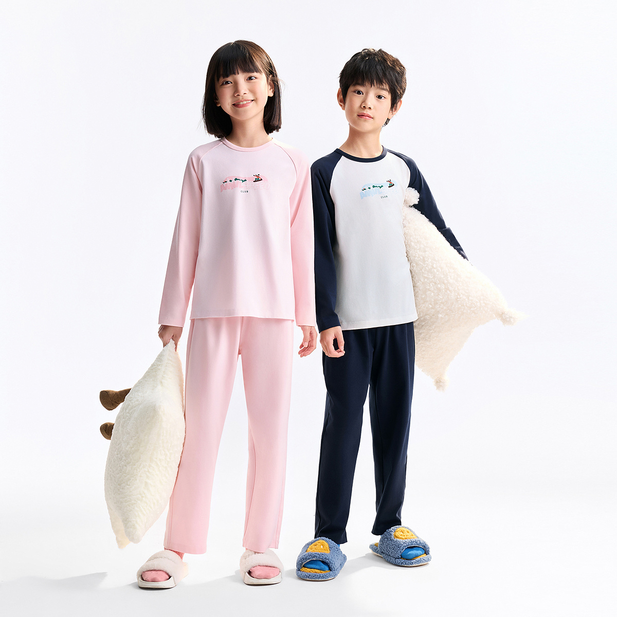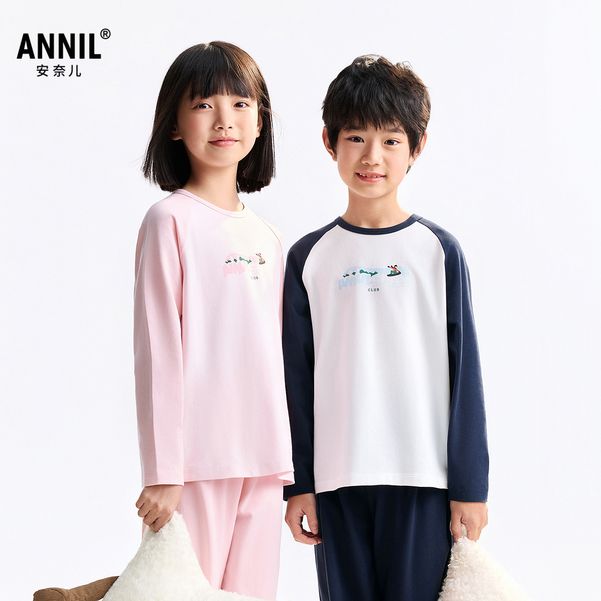免10元 2025秋新款 安奈儿童装 弹力家居服套装 秋衣 男女童时尚
