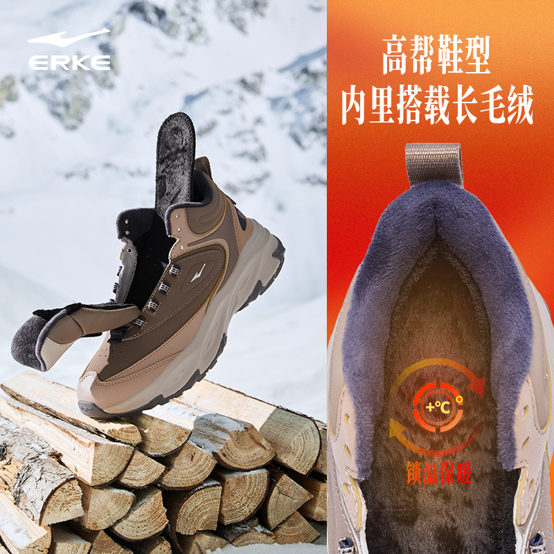 高帮加厚运动鞋 鸿星尔克暖途保暖棉鞋 防滑秋冬新款 男鞋 加绒休闲鞋