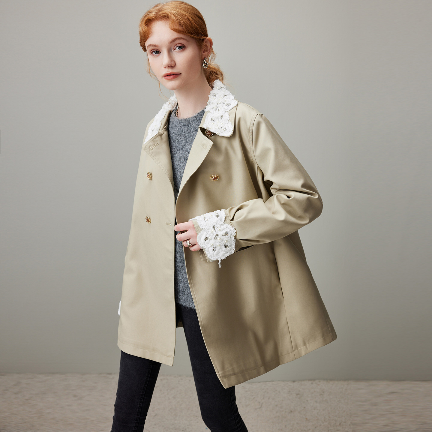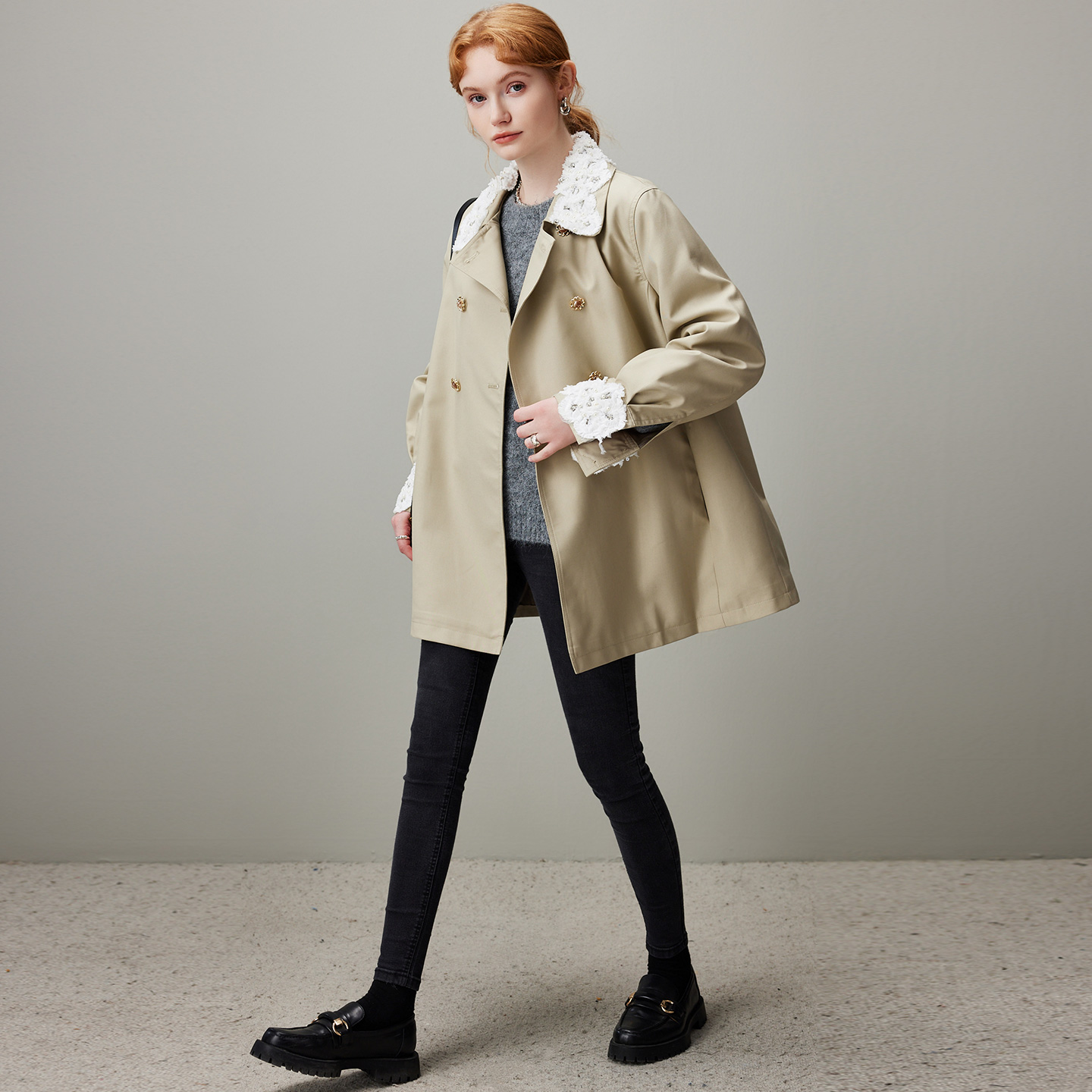 风衣宽松休闲 翻领廓型风衣外套女小个子中长款 嘉茱莉2025春季 新款