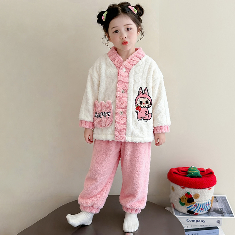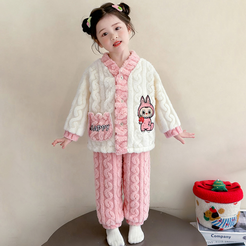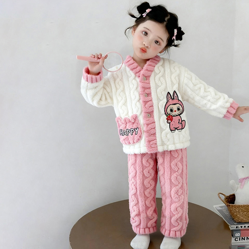 女宝宝冬装 休闲拉布布儿童家居服套装 2025新款 女童卡通睡衣秋冬季
