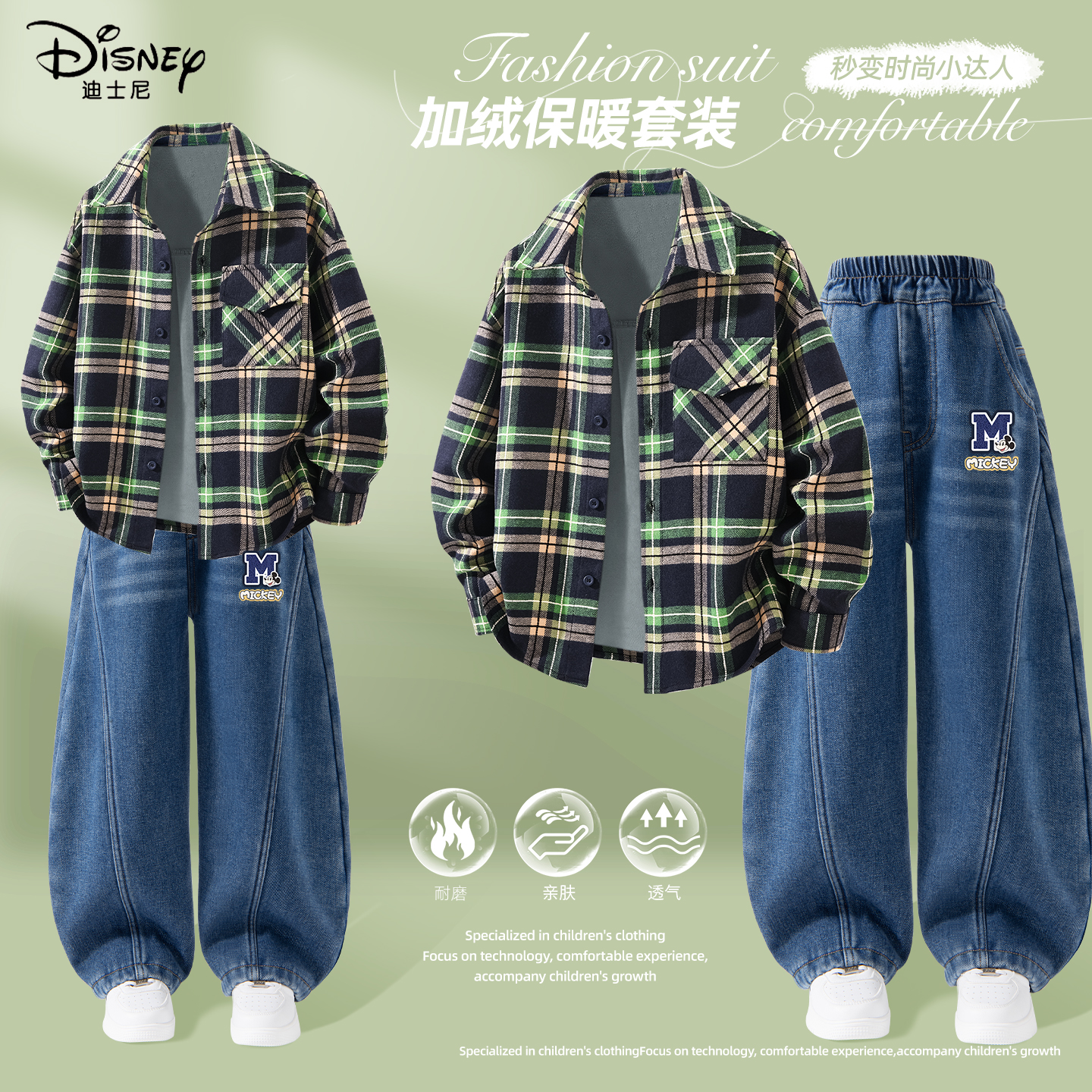 冬装 加厚外套儿童牛仔裤 男孩 韩范痞帅2025新款 迪士尼男童加绒套装