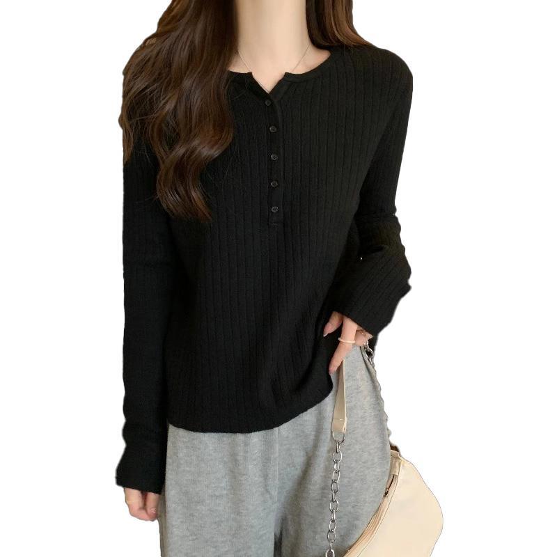 宽松遮肚子显瘦内搭洋气打底衫 女秋新款 上1009h 针织衫 黑色V领长袖