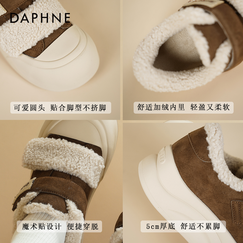 厚底魔术贴雪地靴女 秋冬保暖毛毛棉鞋 达芙妮加绒小白鞋 女2025新款