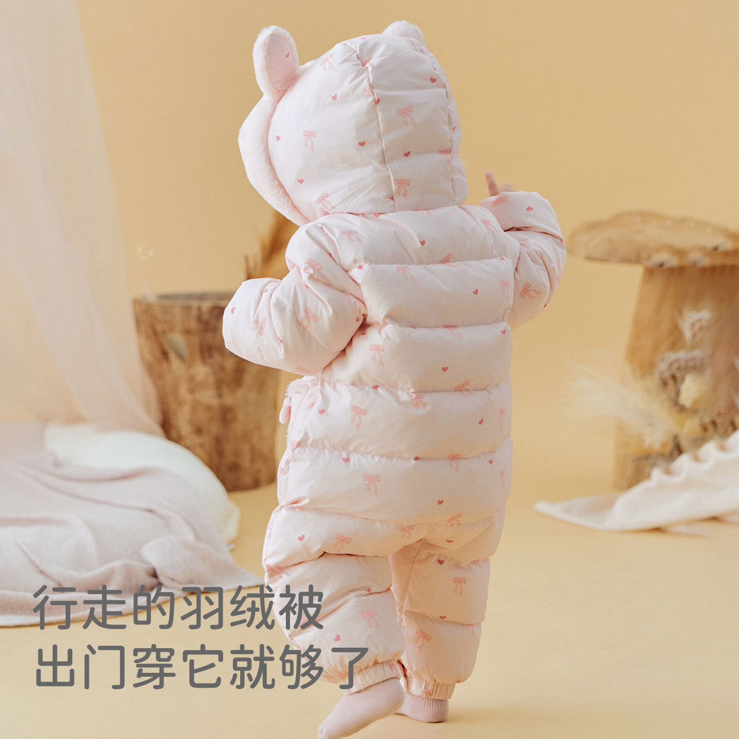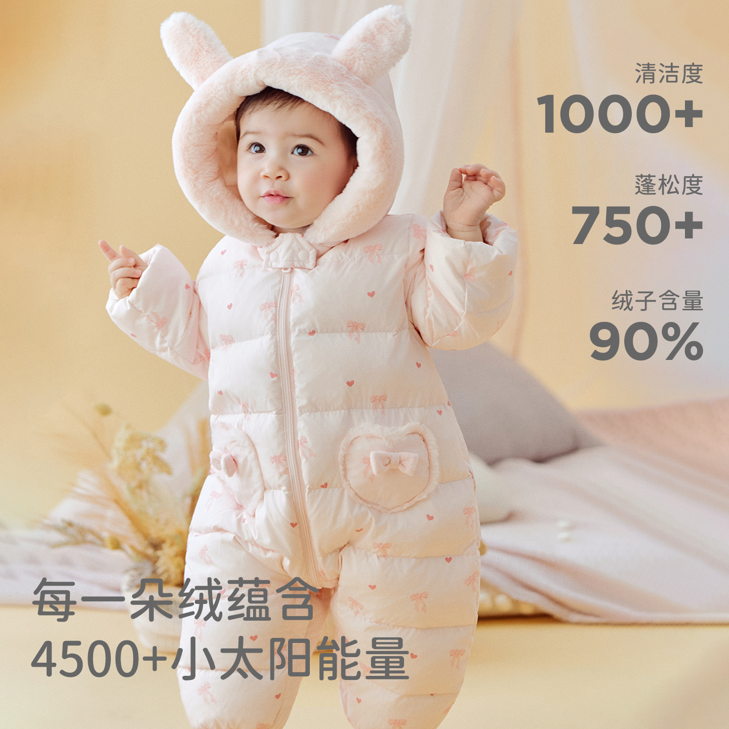 戴维贝拉女宝A类连体衣2025冬装 婴儿三防羽绒爬服新生儿哈衣 新款