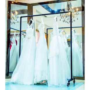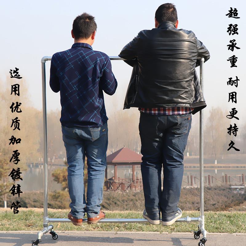 可移动挂衣杆铁艺覆古龙门架 带轮水管衣架女装 服装 店展示架落地式