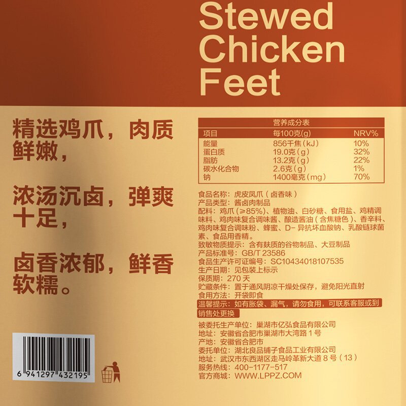 良品铺子虎皮凤爪 休闲解馋即食小零食 卤香味鸡爪子独立小包装